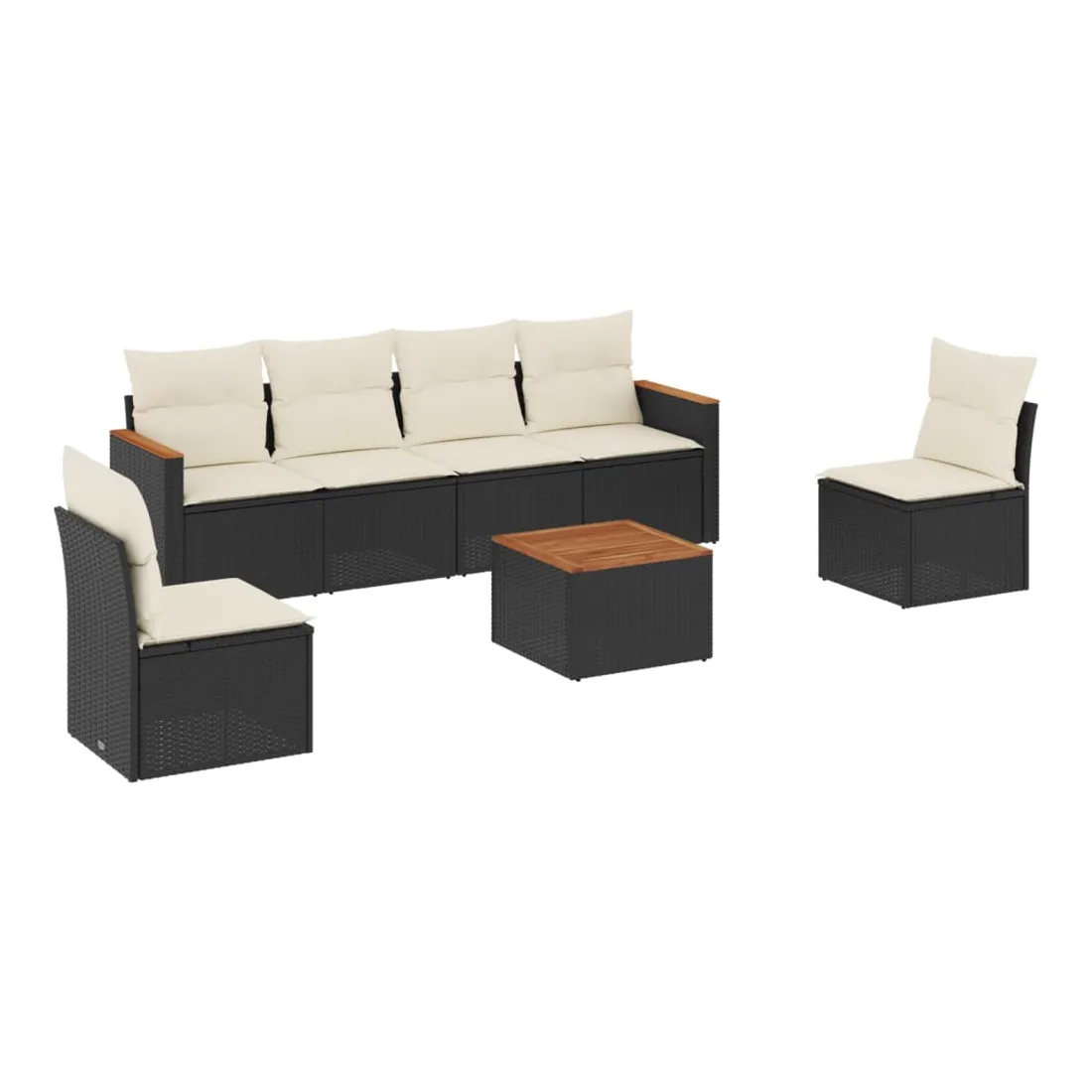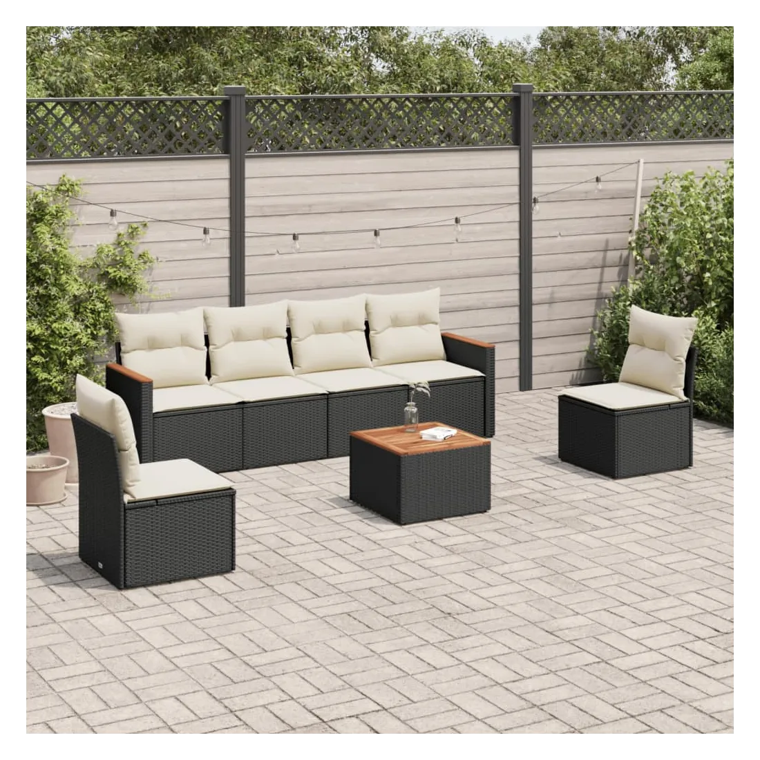 Cet ensemble de canapés de jardin est le complément parfait de votre arrière-cour, terrasse ou patio, offrant un espace confortable et accueillant pour discuter avec la famille et les amis ou simplement se détendre et profiter de l'extérieur. Matériau durable : la résine tressée, également connue sous le nom de poly rotin, est un matériau synthétique solide et nécessitant peu d'entretien qui ressemble au rotin naturel. Il est léger, facile à nettoyer et couramment utilisé pour les meubles d'extérieur en raison de sa durabilité et de ses propriétés de résistance aux intempéries.Dessus stable et facile à nettoyer : cette table de jardin a un dessus en bois d'acacia robuste, durable et facile à nettoyer avec un chiffon humide.Housse amovible et lavable : ces coussins de siège sont dotés de housses amovibles pour un lavage et un entretien faciles.Cadre robuste et stable : le cadre en acier enduit de poudre assure la solidité et la stabilité du meuble de jardin pour une utilisation quotidienne à l'extérieur.Conception modulaire : cet ensemble de meubles d'extérieur a une conception modulaire, ce qui le rend complètement flexible et facile à déplacer, afin que vous puissiez créer un agencement de meubles d'extérieur personnalisé. Bon à savoir :Pour que vos meubles d'extérieur restent beaux, nous vous recommandons de les protéger avec une housse imperméable.