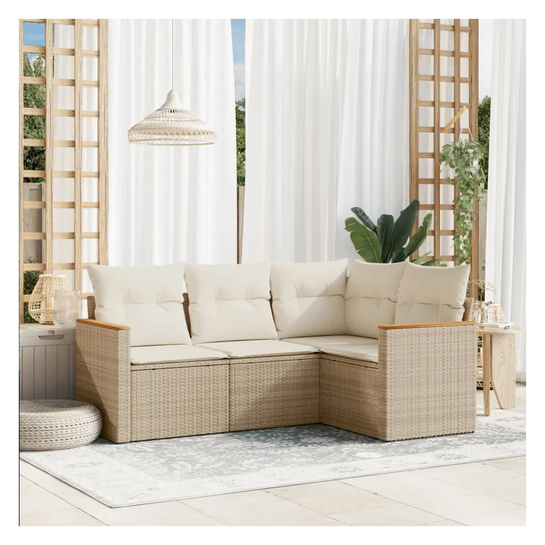 Cet ensemble de canapés de jardin est le complément parfait de votre arrière-cour, terrasse ou patio, offrant un espace confortable et accueillant pour discuter avec la famille et les amis ou simplement se détendre et profiter de l'extérieur. Matériau durable : la résine tressée, également connue sous le nom de poly rotin, est un matériau synthétique solide et nécessitant peu d'entretien qui ressemble au rotin naturel. Il est léger, facile à nettoyer et couramment utilisé pour les meubles d'extérieur en raison de sa durabilité et de ses propriétés de résistance aux intempéries.Housse amovible et lavable : ces coussins de siège sont dotés de housses amovibles pour un lavage et un entretien faciles.Cadre robuste et stable : le cadre en acier enduit de poudre assure la solidité et la stabilité du meuble de jardin pour une utilisation quotidienne à l'extérieur.Conception modulaire : cet ensemble de meubles d'extérieur a une conception modulaire, ce qui le rend complètement flexible et facile à déplacer, afin que vous puissiez créer un agencement de meubles d'extérieur personnalisé. Bon à savoir :Pour que vos meubles d'extérieur restent beaux, nous vous recommandons de les protéger avec une housse imperméable.