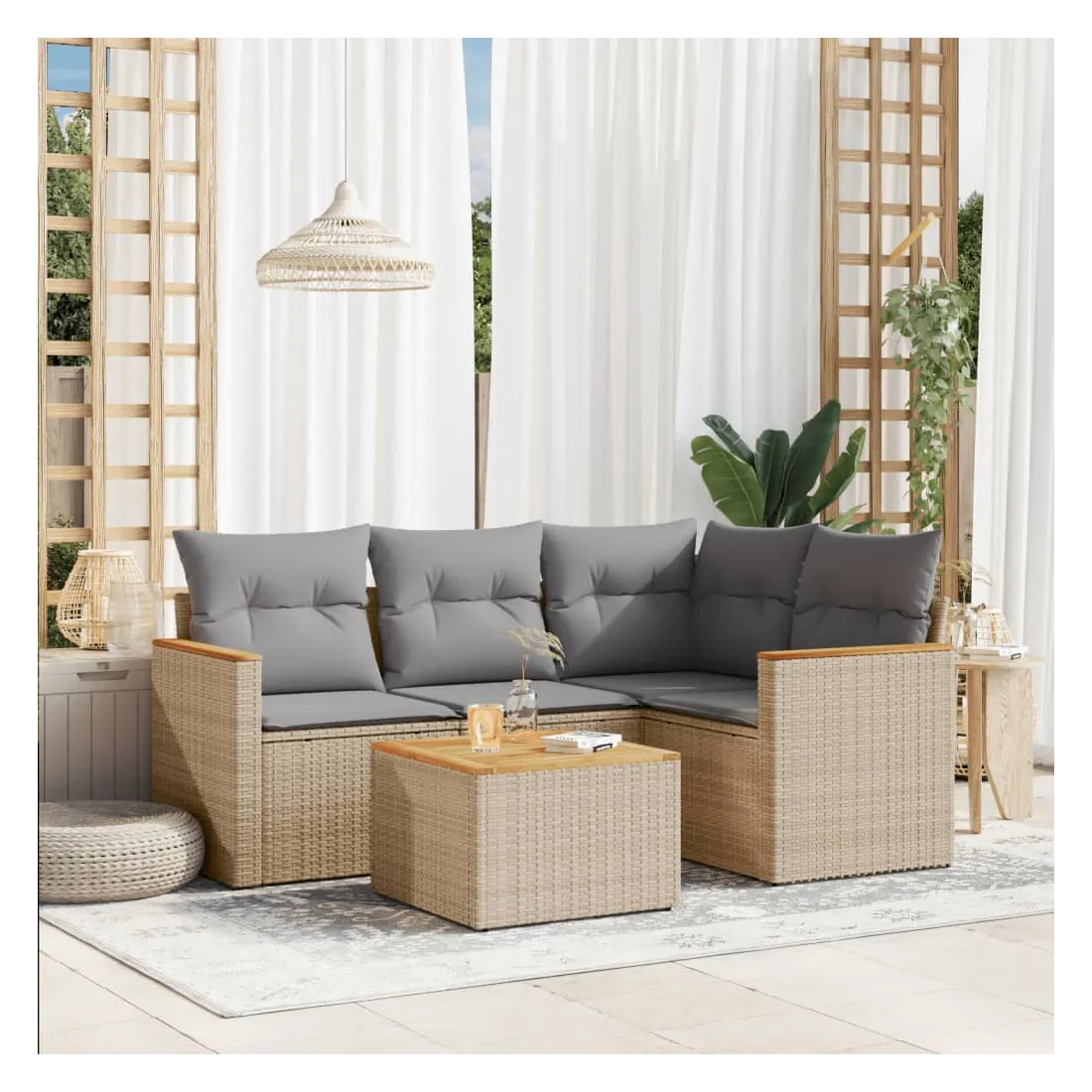 Cet ensemble de canapés de jardin est le complément parfait de votre arrière-cour, terrasse ou patio, offrant un espace confortable et accueillant pour discuter avec la famille et les amis ou simplement se détendre et profiter de l'extérieur. Matériau durable : la résine tressée, également connue sous le nom de poly rotin, est un matériau synthétique solide et nécessitant peu d'entretien qui ressemble au rotin naturel. Il est léger, facile à nettoyer et couramment utilisé pour les meubles d'extérieur en raison de sa durabilité et de ses propriétés de résistance aux intempéries.Dessus stable et facile à nettoyer : cette table de jardin a un dessus en bois d'acacia robuste, durable et facile à nettoyer avec un chiffon humide.Housse amovible et lavable : ces coussins de siège sont dotés de housses amovibles pour un lavage et un entretien faciles.Cadre robuste et stable : le cadre en acier enduit de poudre assure la solidité et la stabilité du meuble de jardin pour une utilisation quotidienne à l'extérieur.Conception modulaire : cet ensemble de meubles d'extérieur a une conception modulaire, ce qui le rend complètement flexible et facile à déplacer, afin que vous puissiez créer un agencement de meubles d'extérieur personnalisé. Bon à savoir :Pour que vos meubles d'extérieur restent beaux, nous vous recommandons de les protéger avec une housse imperméable.