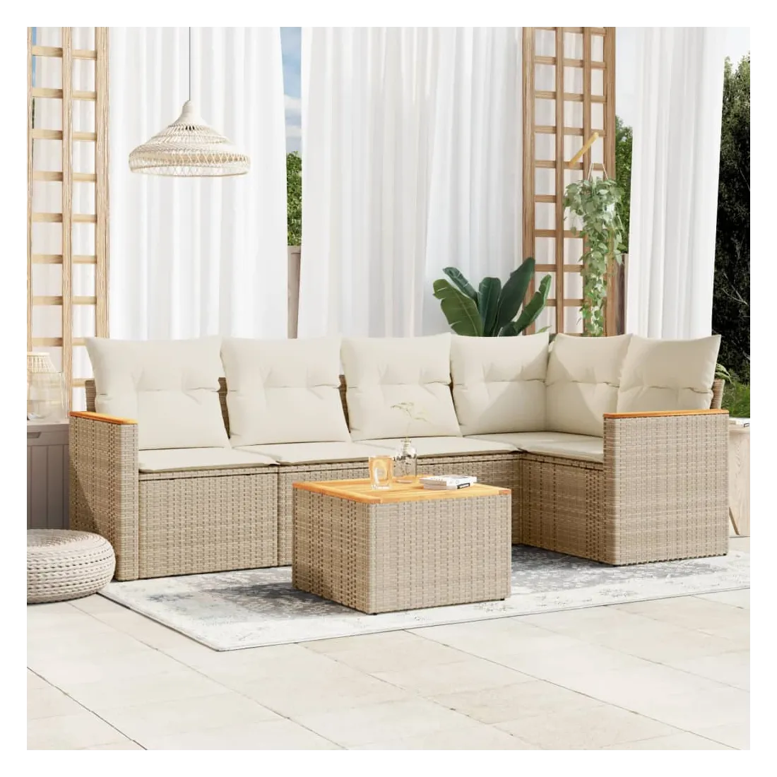 Salon de jardin avec coussins 6 pcs beige résine tressée