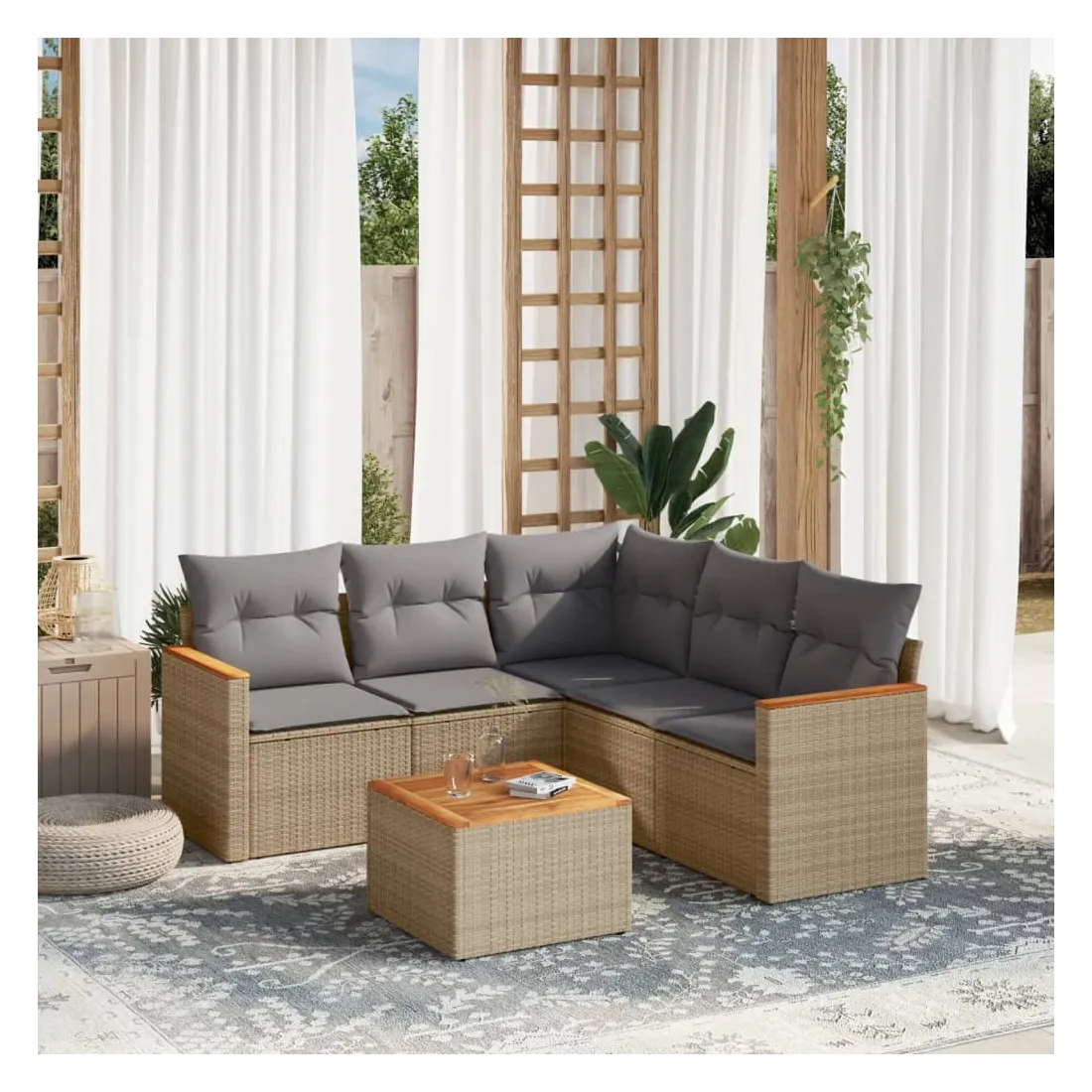 Salon de jardin avec coussins 6pcs mélange beige résine tressée