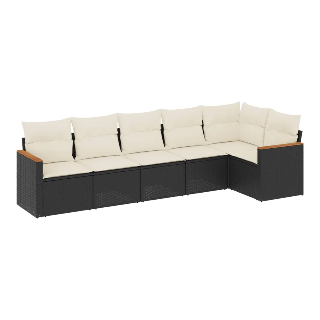 Salon de jardin 6 pcs avec coussins noir résine tressée