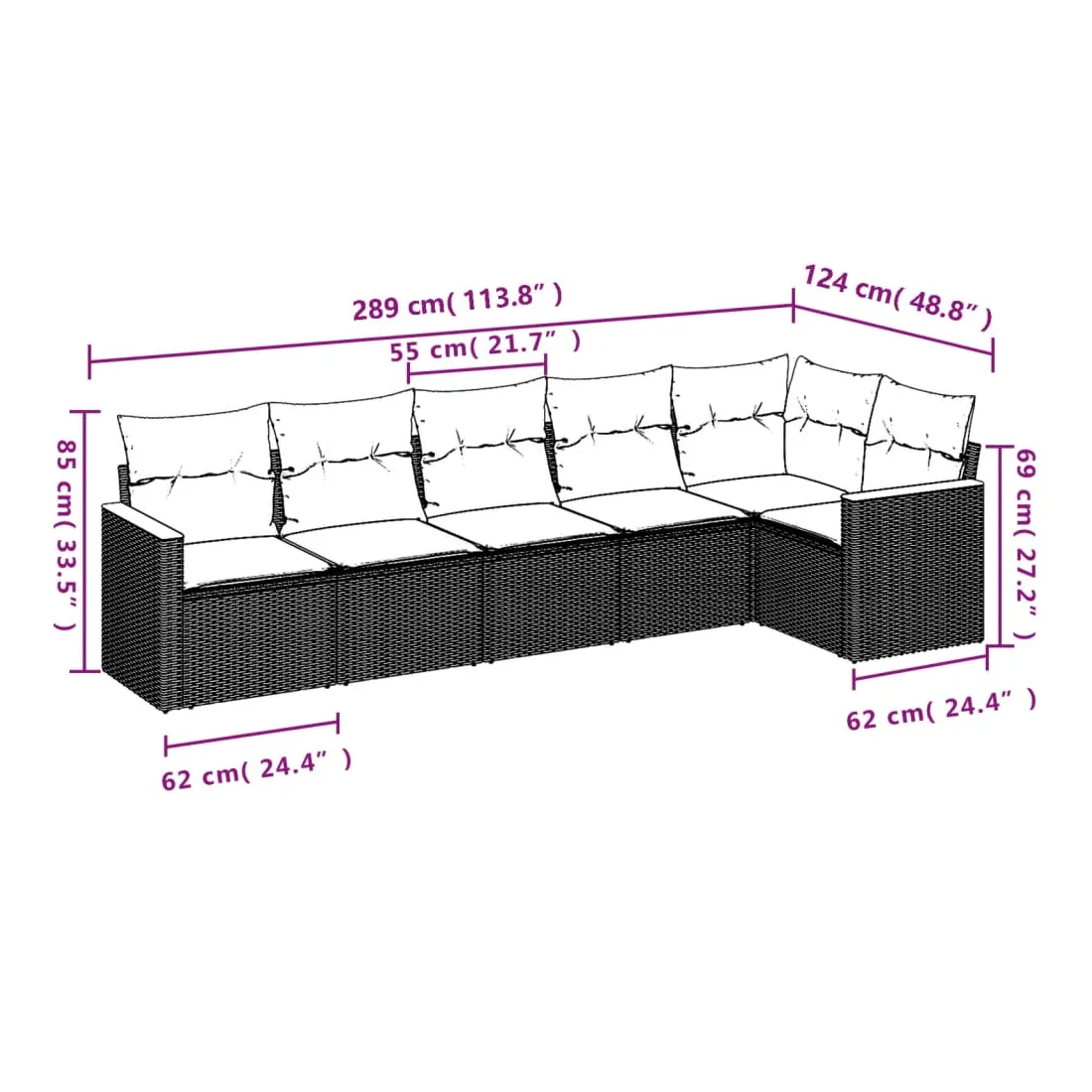 Cet ensemble de canapés de jardin est le complément parfait de votre arrière-cour, terrasse ou patio, offrant un espace confortable et accueillant pour discuter avec la famille et les amis ou simplement se détendre et profiter de l'extérieur. Matériau durable : la résine tressée, également connue sous le nom de poly rotin, est un matériau synthétique solide et nécessitant peu d'entretien qui ressemble au rotin naturel. Il est léger, facile à nettoyer et couramment utilisé pour les meubles d'extérieur en raison de sa durabilité et de ses propriétés de résistance aux intempéries.Housse amovible et lavable : ces coussins de siège sont dotés de housses amovibles pour un lavage et un entretien faciles.Cadre robuste et stable : le cadre en acier enduit de poudre assure la solidité et la stabilité du meuble de jardin pour une utilisation quotidienne à l'extérieur.Conception modulaire : cet ensemble de meubles d'extérieur a une conception modulaire, ce qui le rend complètement flexible et facile à déplacer, afin que vous puissiez créer un agencement de meubles d'extérieur personnalisé. Bon à savoir :Pour que vos meubles d'extérieur restent beaux, nous vous recommandons de les protéger avec une housse imperméable.