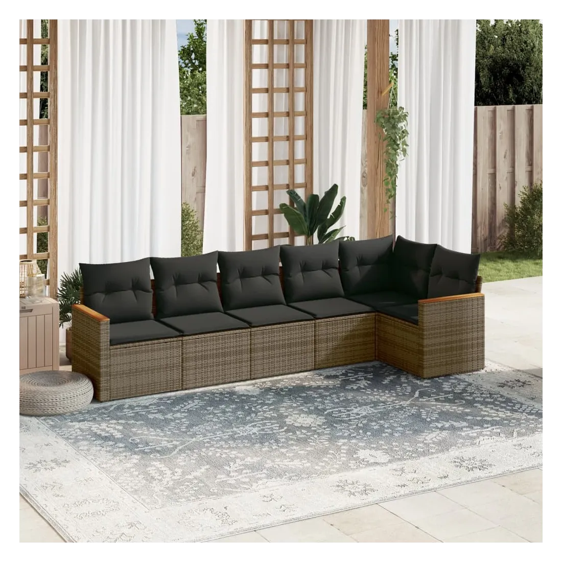 Salon de jardin 6 pcs avec coussins gris résine tressée