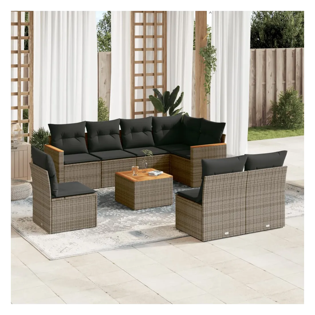 Cet ensemble de canapés de jardin est le complément parfait de votre arrière-cour, terrasse ou patio, offrant un espace confortable et accueillant pour discuter avec la famille et les amis ou simplement se détendre et profiter de l'extérieur. Matériau durable : la résine tressée, également connue sous le nom de poly rotin, est un matériau synthétique solide et nécessitant peu d'entretien qui ressemble au rotin naturel. Il est léger, facile à nettoyer et couramment utilisé pour les meubles d'extérieur en raison de sa durabilité et de ses propriétés de résistance aux intempéries.Dessus stable et facile à nettoyer : cette table de jardin a un dessus en bois d'acacia robuste, durable et facile à nettoyer avec un chiffon humide.Housse amovible et lavable : ces coussins de siège sont dotés de housses amovibles pour un lavage et un entretien faciles.Cadre robuste et stable : le cadre en acier enduit de poudre assure la solidité et la stabilité du meuble de jardin pour une utilisation quotidienne à l'extérieur.Conception modulaire : cet ensemble de meubles d'extérieur a une conception modulaire, ce qui le rend complètement flexible et facile à déplacer, afin que vous puissiez créer un agencement de meubles d'extérieur personnalisé. Bon à savoir :Pour que vos meubles d'extérieur restent beaux, nous vous recommandons de les protéger avec une housse imperméable.
