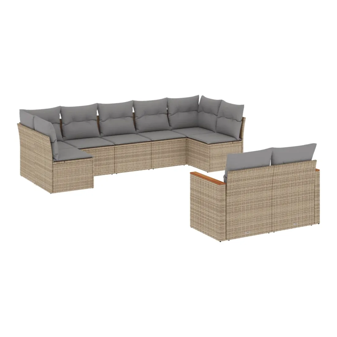 Salon de jardin avec coussins 9pcs mélange beige résine tressée