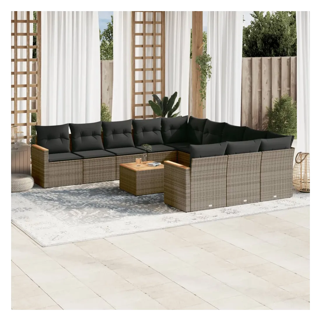 Cet ensemble de canapés de jardin est le complément parfait de votre arrière-cour, terrasse ou patio, offrant un espace confortable et accueillant pour discuter avec la famille et les amis ou simplement se détendre et profiter de l'extérieur. Matériau durable : la résine tressée, également connue sous le nom de poly rotin, est un matériau synthétique solide et nécessitant peu d'entretien qui ressemble au rotin naturel. Il est léger, facile à nettoyer et couramment utilisé pour les meubles d'extérieur en raison de sa durabilité et de ses propriétés de résistance aux intempéries.Dessus stable et facile à nettoyer : cette table de jardin a un dessus en bois d'acacia robuste, durable et facile à nettoyer avec un chiffon humide.Housse amovible et lavable : ces coussins de siège sont dotés de housses amovibles pour un lavage et un entretien faciles.Cadre robuste et stable : le cadre en acier enduit de poudre assure la solidité et la stabilité du meuble de jardin pour une utilisation quotidienne à l'extérieur.Conception modulaire : cet ensemble de meubles d'extérieur a une conception modulaire, ce qui le rend complètement flexible et facile à déplacer, afin que vous puissiez créer un agencement de meubles d'extérieur personnalisé. Bon à savoir :Pour que vos meubles d'extérieur restent beaux, nous vous recommandons de les protéger avec une housse imperméable.