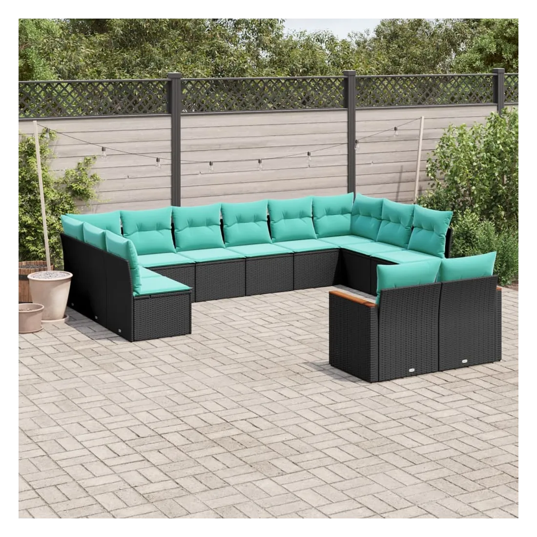 Cet ensemble de canapés de jardin est le complément parfait de votre arrière-cour, terrasse ou patio, offrant un espace confortable et accueillant pour discuter avec la famille et les amis ou simplement se détendre et profiter de l'extérieur. Matériau durable : la résine tressée, également connue sous le nom de poly rotin, est un matériau synthétique solide et nécessitant peu d'entretien qui ressemble au rotin naturel. Elle est légère, facile à nettoyer et couramment utilisée pour les meubles d'extérieur en raison de sa durabilité et de ses propriétés de résistance aux intempéries.Housse amovible et lavable : ces coussins de siège sont dotés de housses amovibles pour un lavage et un entretien faciles.Cadre robuste et stable : le cadre en acier enduit de poudre assure la solidité et la stabilité du meuble de jardin pour une utilisation quotidienne à l'extérieur.Conception modulaire : cet ensemble de meubles d'extérieur a une conception modulaire, ce qui le rend complètement flexible et facile à déplacer, afin que vous puissiez créer un agencement de meubles d'extérieur personnalisé. Bon à savoir :Pour que vos meubles d'extérieur restent beaux, nous vous recommandons de les protéger avec une housse imperméable.