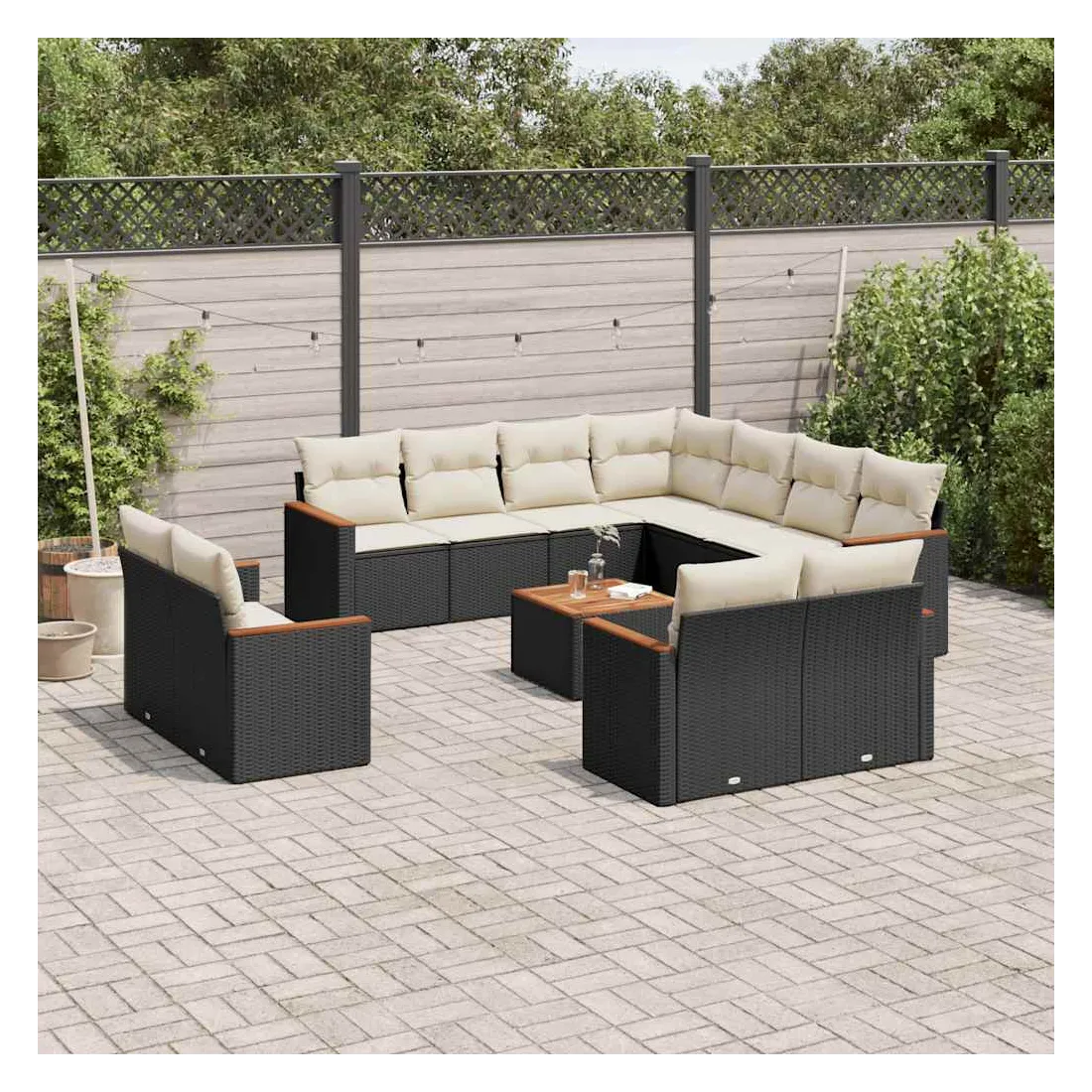 Cet ensemble de canapés de jardin est le complément parfait de votre arrière-cour, terrasse ou patio, offrant un espace confortable et accueillant pour discuter avec la famille et les amis ou simplement se détendre et profiter de l'extérieur. Matériau durable : la résine tressée, également connue sous le nom de poly rotin, est un matériau synthétique solide et nécessitant peu d'entretien qui ressemble au rotin naturel. Il est léger, facile à nettoyer et couramment utilisé pour les meubles d'extérieur en raison de sa durabilité et de ses propriétés de résistance aux intempéries.Dessus stable et facile à nettoyer : cette table de jardin a un dessus en bois d'acacia robuste, durable et facile à nettoyer avec un chiffon humide.Housse amovible et lavable : ces coussins de siège sont dotés de housses amovibles pour un lavage et un entretien faciles.Cadre robuste et stable : le cadre en acier enduit de poudre assure la solidité et la stabilité du meuble de jardin pour une utilisation quotidienne à l'extérieur.Conception modulaire : cet ensemble de meubles d'extérieur a une conception modulaire, ce qui le rend complètement flexible et facile à déplacer, afin que vous puissiez créer un agencement de meubles d'extérieur personnalisé. Bon à savoir :Pour que vos meubles d'extérieur restent beaux, nous vous recommandons de les protéger avec une housse imperméable.
