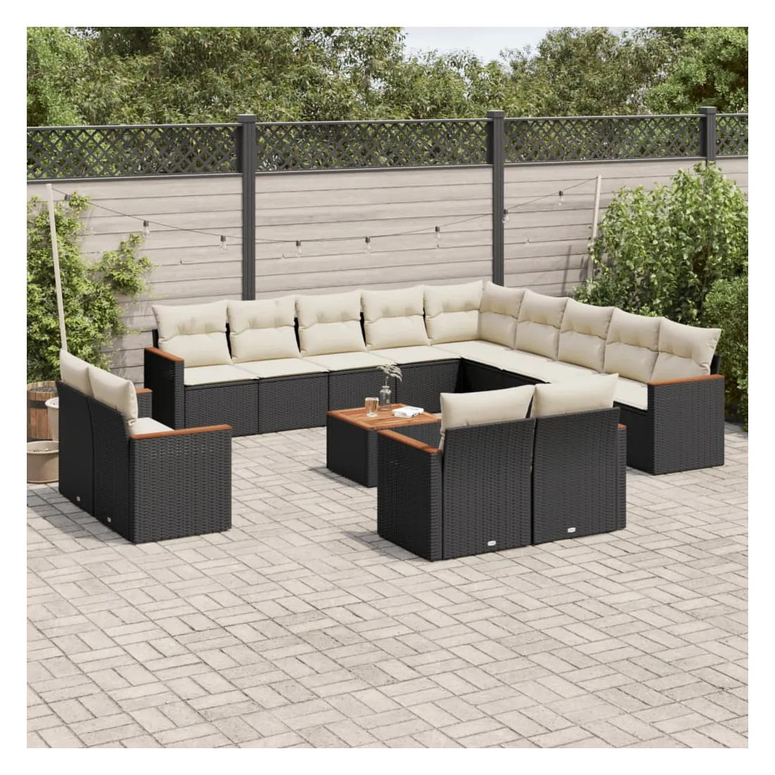 Cet ensemble de canapés de jardin est le complément parfait de votre arrière-cour, terrasse ou patio, offrant un espace confortable et accueillant pour discuter avec la famille et les amis ou simplement se détendre et profiter de l'extérieur. Matériau durable : la résine tressée, également connue sous le nom de poly rotin, est un matériau synthétique solide et nécessitant peu d'entretien qui ressemble au rotin naturel. Il est léger, facile à nettoyer et couramment utilisé pour les meubles d'extérieur en raison de sa durabilité et de ses propriétés de résistance aux intempéries.Dessus stable et facile à nettoyer : cette table de jardin a un dessus en bois d'acacia robuste, durable et facile à nettoyer avec un chiffon humide.Housse amovible et lavable : ces coussins de siège sont dotés de housses amovibles pour un lavage et un entretien faciles.Cadre robuste et stable : le cadre en acier enduit de poudre assure la solidité et la stabilité du meuble de jardin pour une utilisation quotidienne à l'extérieur.Conception modulaire : cet ensemble de meubles d'extérieur a une conception modulaire, ce qui le rend complètement flexible et facile à déplacer, afin que vous puissiez créer un agencement de meubles d'extérieur personnalisé. Bon à savoir :Pour que vos meubles d'extérieur restent beaux, nous vous recommandons de les protéger avec une housse imperméable.