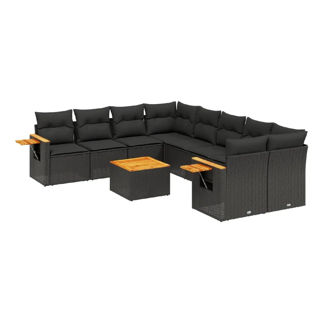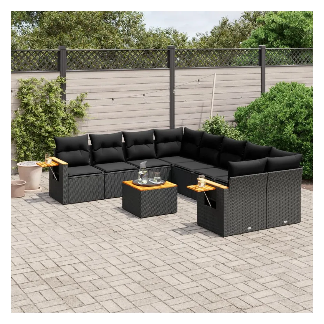 Cet ensemble de canapés de jardin est le complément parfait de votre arrière-cour, terrasse ou patio, offrant un espace confortable et accueillant pour discuter avec la famille et les amis ou simplement se détendre et profiter de l'extérieur. Matériau durable : la résine tressée, également connue sous le nom de poly rotin, est un matériau synthétique solide et nécessitant peu d'entretien qui ressemble au rotin naturel. Il est léger, facile à nettoyer et couramment utilisé pour les meubles d'extérieur en raison de sa durabilité et de ses propriétés de résistance aux intempéries.Dessus stable et facile à nettoyer : cette table de jardin a un dessus en bois d'acacia robuste, durable et facile à nettoyer avec un chiffon humide.Table d'appoint pratique : ce mobilier d'extérieur comprend une table d'appoint pliable avec un ressort à gaz sur les accoudoirs, offrant un endroit pratique pour garder vos essentiels à portée de main.Housse amovible et lavable : ces coussins de siège sont dotés de housses amovibles pour un lavage et un entretien faciles.Conception modulaire : cet ensemble de meubles d'extérieur a une conception modulaire, ce qui le rend complètement flexible et facile à déplacer, afin que vous puissiez créer un agencement de meubles d'extérieur personnalisé. Bon à savoir :Pour que vos meubles d'extérieur restent beaux, nous vous recommandons de les protéger avec une housse imperméable.