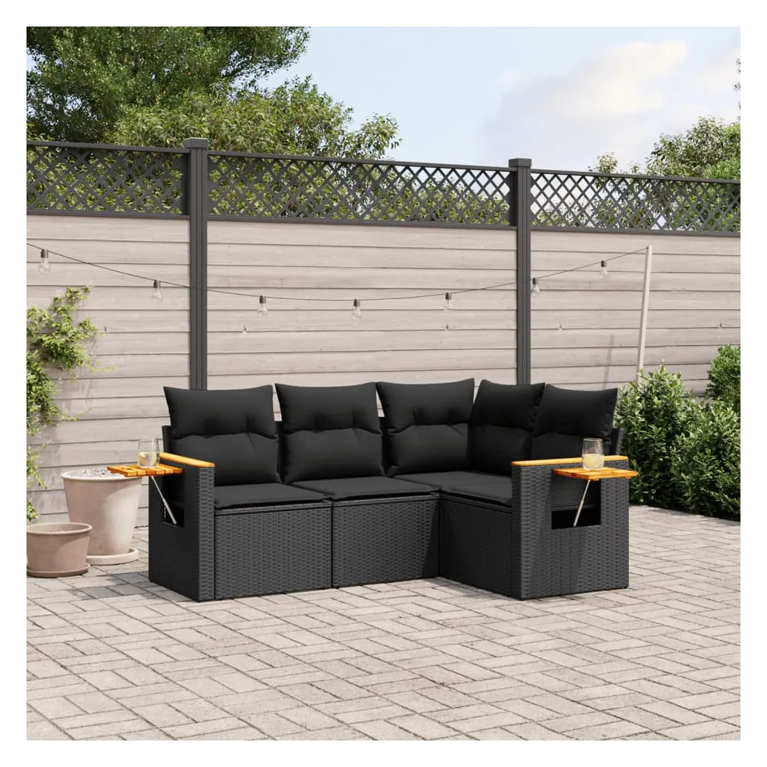 Cet ensemble de canapés de jardin est le complément parfait de votre arrière-cour, terrasse ou patio, offrant un espace confortable et accueillant pour discuter avec la famille et les amis ou simplement se détendre et profiter de l'extérieur. Matériau durable : la résine tressée, également connue sous le nom de poly rotin, est un matériau synthétique solide et nécessitant peu d'entretien qui ressemble au rotin naturel. Il est léger, facile à nettoyer et couramment utilisé pour les meubles d'extérieur en raison de sa durabilité et de ses propriétés de résistance aux intempéries.Table d'appoint pratique : ce mobilier d'extérieur comprend une table d'appoint pliable avec un ressort à gaz sur les accoudoirs, offrant un endroit pratique pour garder vos essentiels à portée de main.Housse amovible et lavable : ces coussins de siège sont dotés de housses amovibles pour un lavage et un entretien faciles.Conception modulaire : cet ensemble de meubles d'extérieur a une conception modulaire, ce qui le rend complètement flexible et facile à déplacer, afin que vous puissiez créer un agencement de meubles d'extérieur personnalisé. Bon à savoir :Pour que vos meubles d'extérieur restent beaux, nous vous recommandons de les protéger avec une housse imperméable.