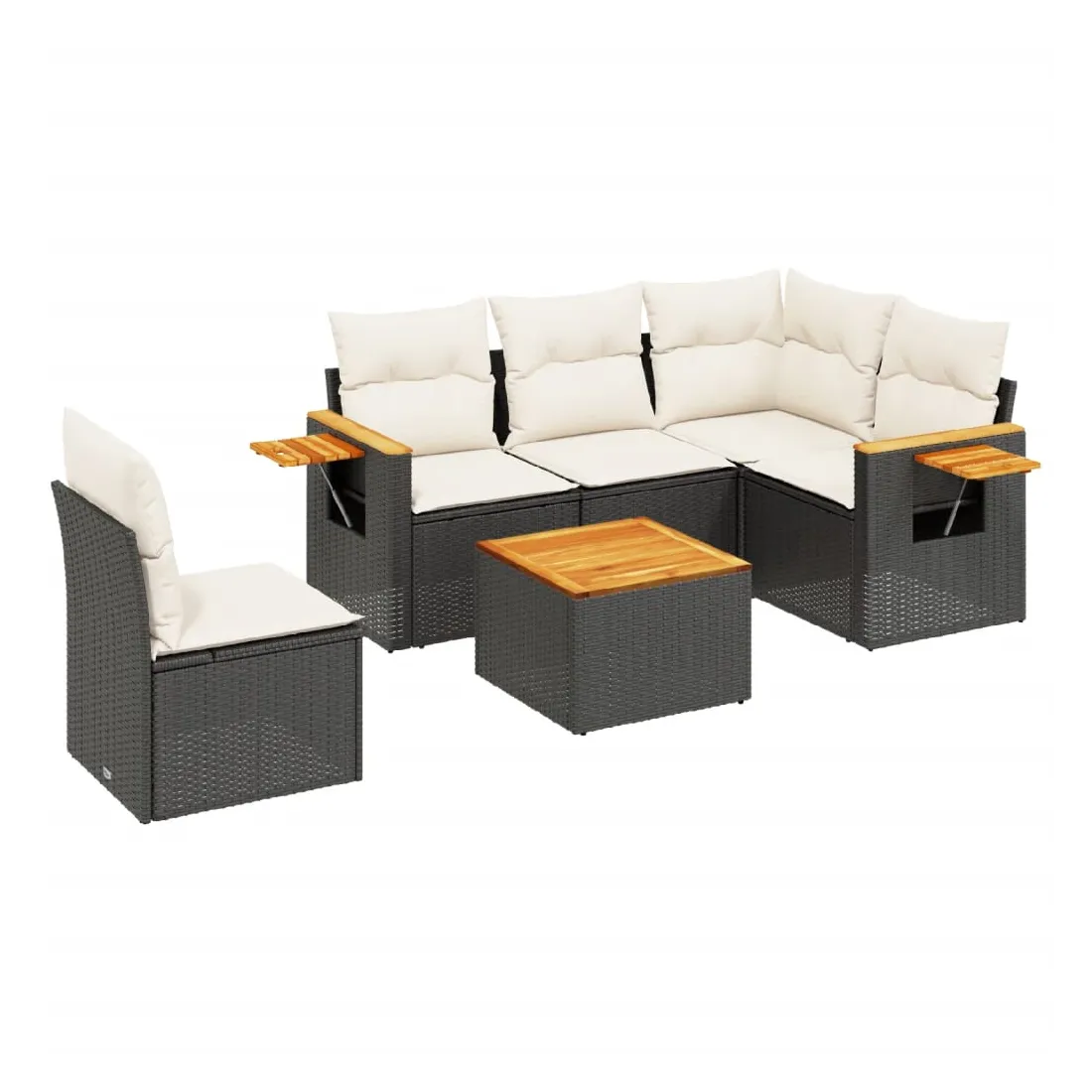 Salon de jardin 6 pcs avec coussins noir résine tressée
