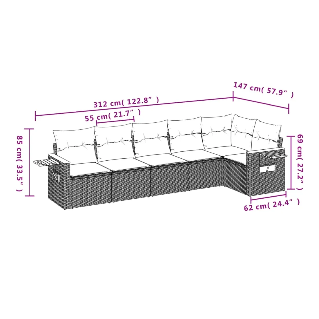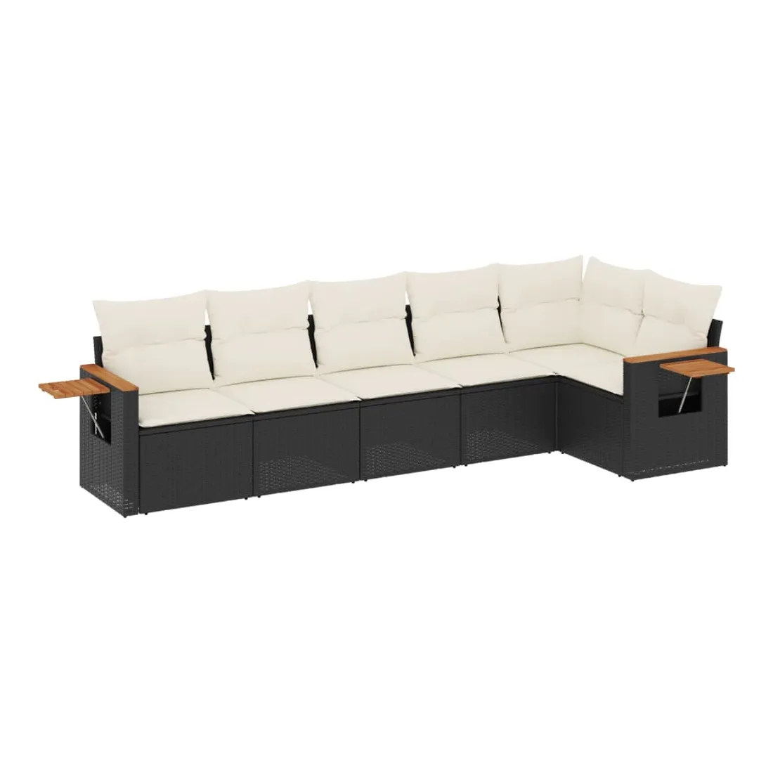 Salon de jardin 6 pcs avec coussins noir résine tressée