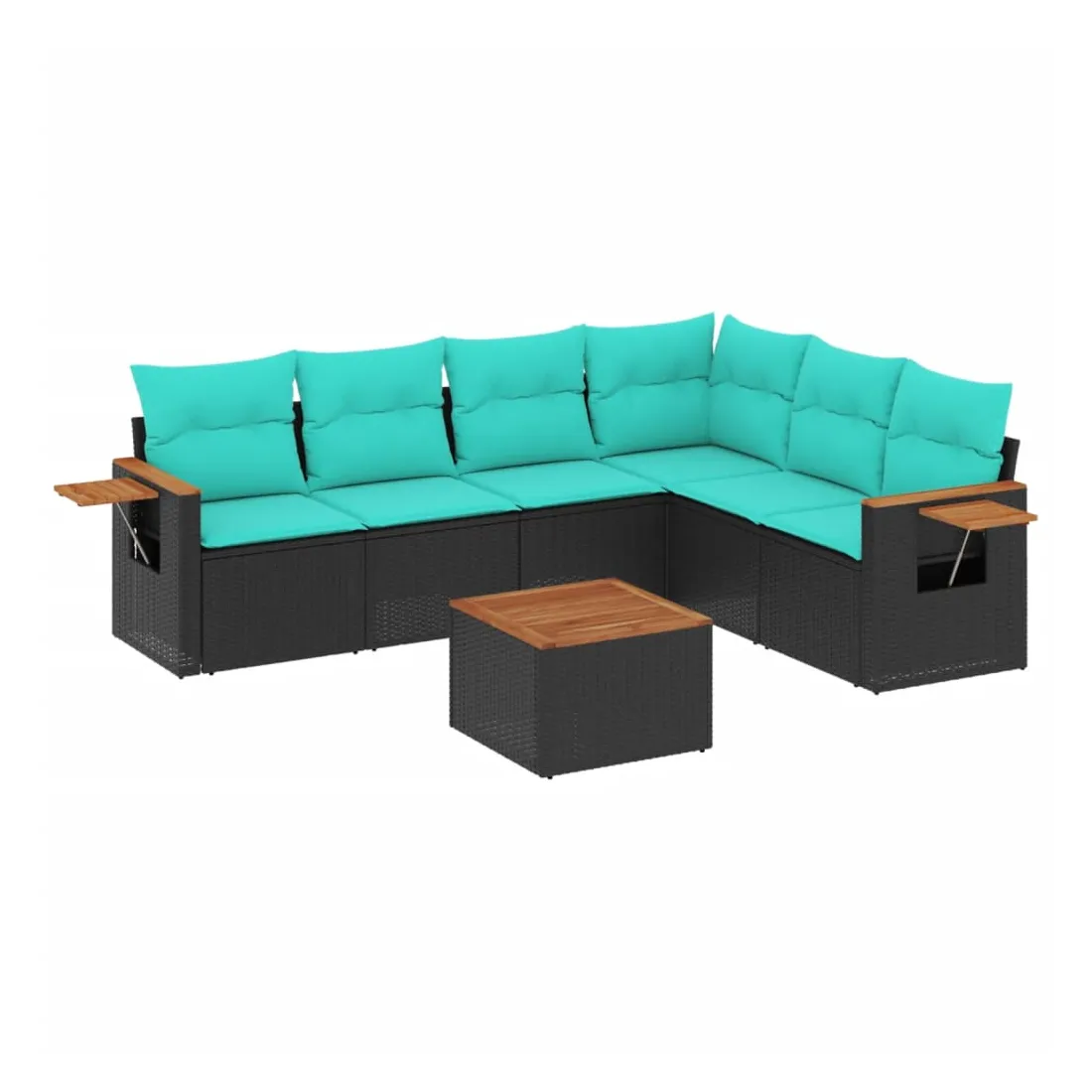 Salon de jardin 7 pcs avec coussins noir résine tressée