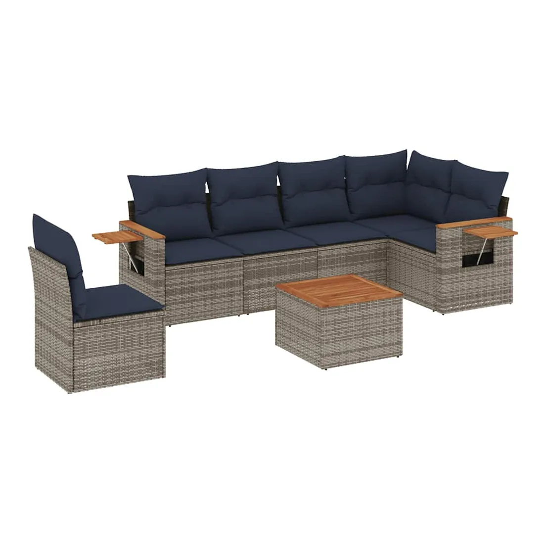 Cet ensemble de canapés de jardin est le complément parfait de votre arrière-cour, terrasse ou patio, offrant un espace confortable et accueillant pour discuter avec la famille et les amis ou simplement se détendre et profiter de l'extérieur. Matériau durable : la résine tressée, également connue sous le nom de poly rotin, est un matériau synthétique solide et nécessitant peu d'entretien qui ressemble au rotin naturel. Il est léger, facile à nettoyer et couramment utilisé pour les meubles d'extérieur en raison de sa durabilité et de ses propriétés de résistance aux intempéries.Dessus stable et facile à nettoyer : cette table de jardin a un dessus en bois d'acacia robuste, durable et facile à nettoyer avec un chiffon humide.Table d'appoint pratique : ce mobilier d'extérieur comprend une table d'appoint pliable avec un ressort à gaz sur les accoudoirs, offrant un endroit pratique pour garder vos essentiels à portée de main.Housse amovible et lavable : ces coussins de siège sont dotés de housses amovibles pour un lavage et un entretien faciles.Conception modulaire : cet ensemble de meubles d'extérieur a une conception modulaire, ce qui le rend complètement flexible et facile à déplacer, afin que vous puissiez créer un agencement de meubles d'extérieur personnalisé. Bon à savoir :Pour que vos meubles d'extérieur restent beaux, nous vous recommandons de les protéger avec une housse imperméable.
