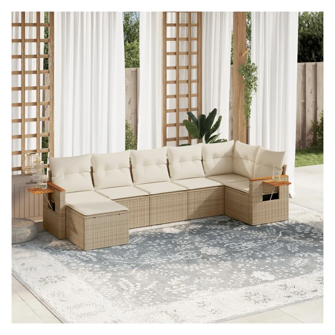Salon de jardin avec coussins 7 pcs beige résine tressée