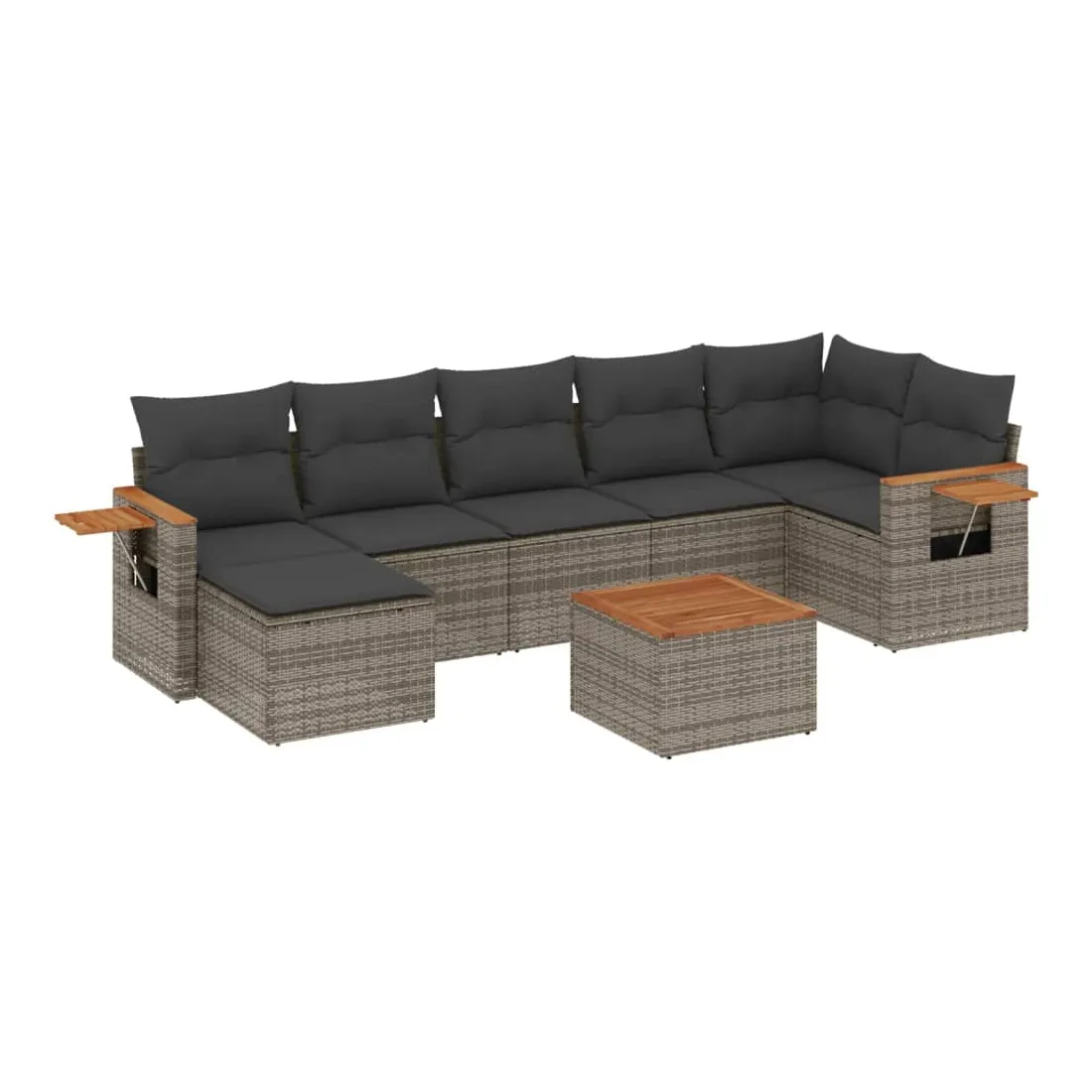 Salon de jardin 8 pcs avec coussins gris résine tressée