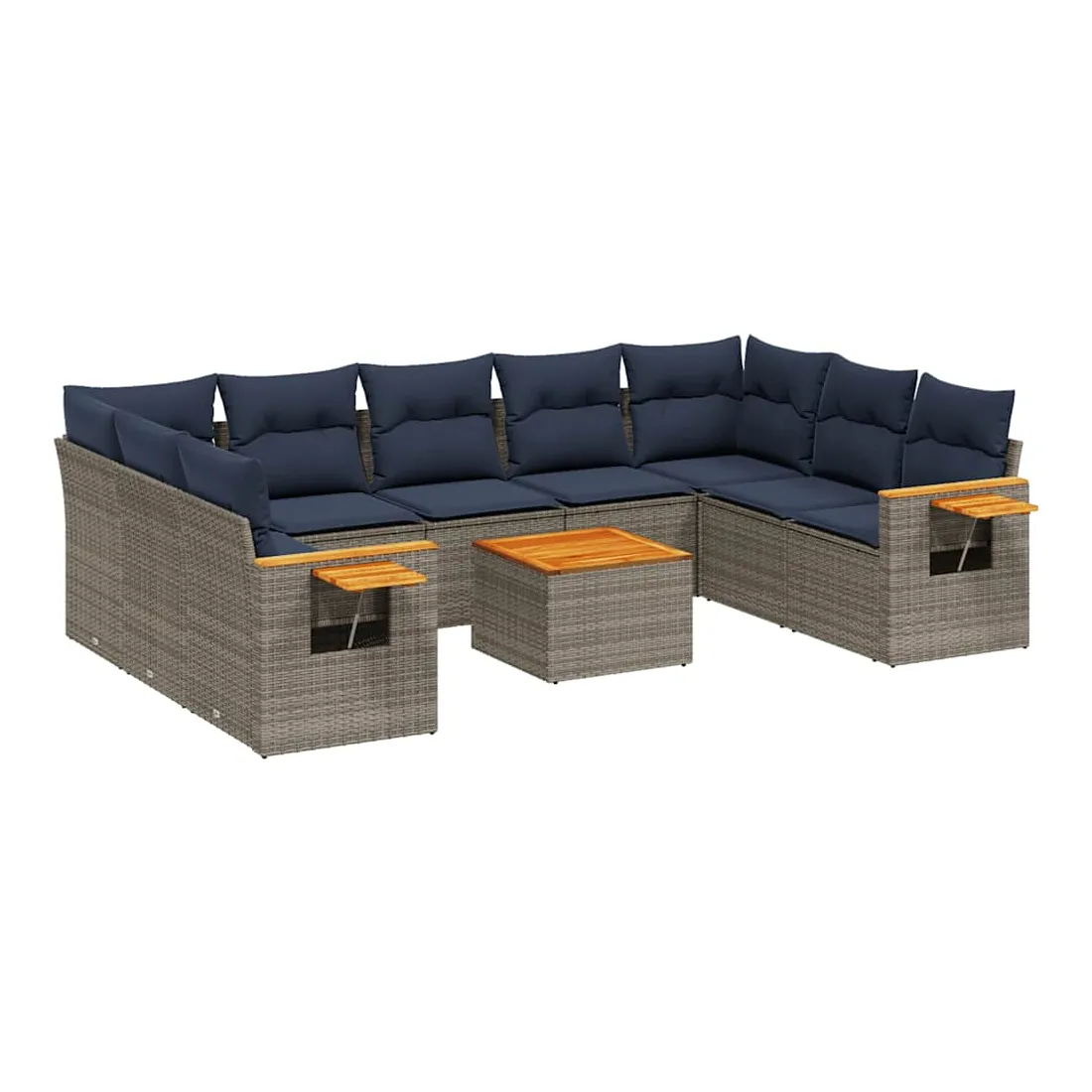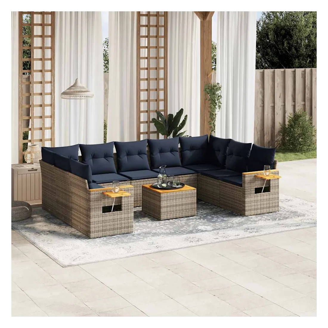 Cet ensemble de canapés de jardin est le complément parfait de votre arrière-cour, terrasse ou patio, offrant un espace confortable et accueillant pour discuter avec la famille et les amis ou simplement se détendre et profiter de l'extérieur. Matériau durable : la résine tressée, également connue sous le nom de poly rotin, est un matériau synthétique solide et nécessitant peu d'entretien qui ressemble au rotin naturel. Il est léger, facile à nettoyer et couramment utilisé pour les meubles d'extérieur en raison de sa durabilité et de ses propriétés de résistance aux intempéries.Dessus stable et facile à nettoyer : cette table de jardin a un dessus en bois d'acacia robuste, durable et facile à nettoyer avec un chiffon humide.Table d'appoint pratique : ce mobilier d'extérieur comprend une table d'appoint pliable avec un ressort à gaz sur les accoudoirs, offrant un endroit pratique pour garder vos essentiels à portée de main.Housse amovible et lavable : ces coussins de siège sont dotés de housses amovibles pour un lavage et un entretien faciles.Conception modulaire : cet ensemble de meubles d'extérieur a une conception modulaire, ce qui le rend complètement flexible et facile à déplacer, afin que vous puissiez créer un agencement de meubles d'extérieur personnalisé. Bon à savoir :Pour que vos meubles d'extérieur restent beaux, nous vous recommandons de les protéger avec une housse imperméable.