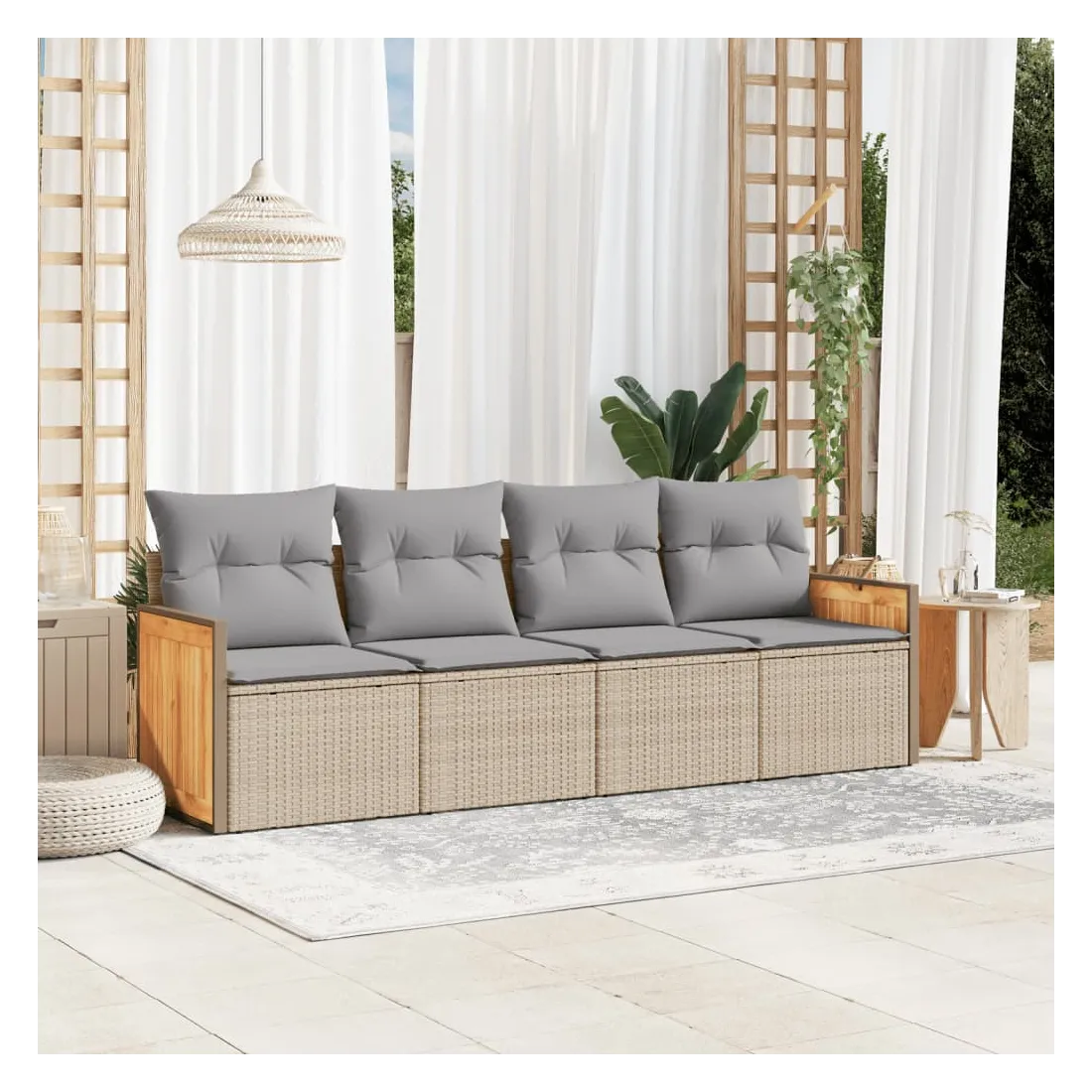 Cet ensemble de canapés de jardin est le complément parfait de votre arrière-cour, terrasse ou patio, offrant un espace confortable et accueillant pour discuter avec la famille et les amis ou simplement se détendre et profiter de l'extérieur. Matériau durable : la résine tressée, également connue sous le nom de poly rotin, est un matériau synthétique solide et nécessitant peu d'entretien qui ressemble au rotin naturel. Il est léger, facile à nettoyer et couramment utilisé pour les meubles d'extérieur en raison de sa durabilité et de ses propriétés de résistance aux intempéries.Expérience d'assise confortable : ce mobilier d'extérieur, doté de coussins épais, offre une expérience d'assise confortable.Housse amovible et lavable : ces coussins de siège sont dotés de housses amovibles pour un lavage et un entretien faciles.Conception modulaire : cet ensemble de meubles d'extérieur a une conception modulaire, ce qui le rend complètement flexible et facile à déplacer, afin que vous puissiez créer un agencement de meubles d'extérieur personnalisé. Bon à savoir :Pour que vos meubles d'extérieur restent beaux, nous vous recommandons de les protéger avec une housse imperméable.