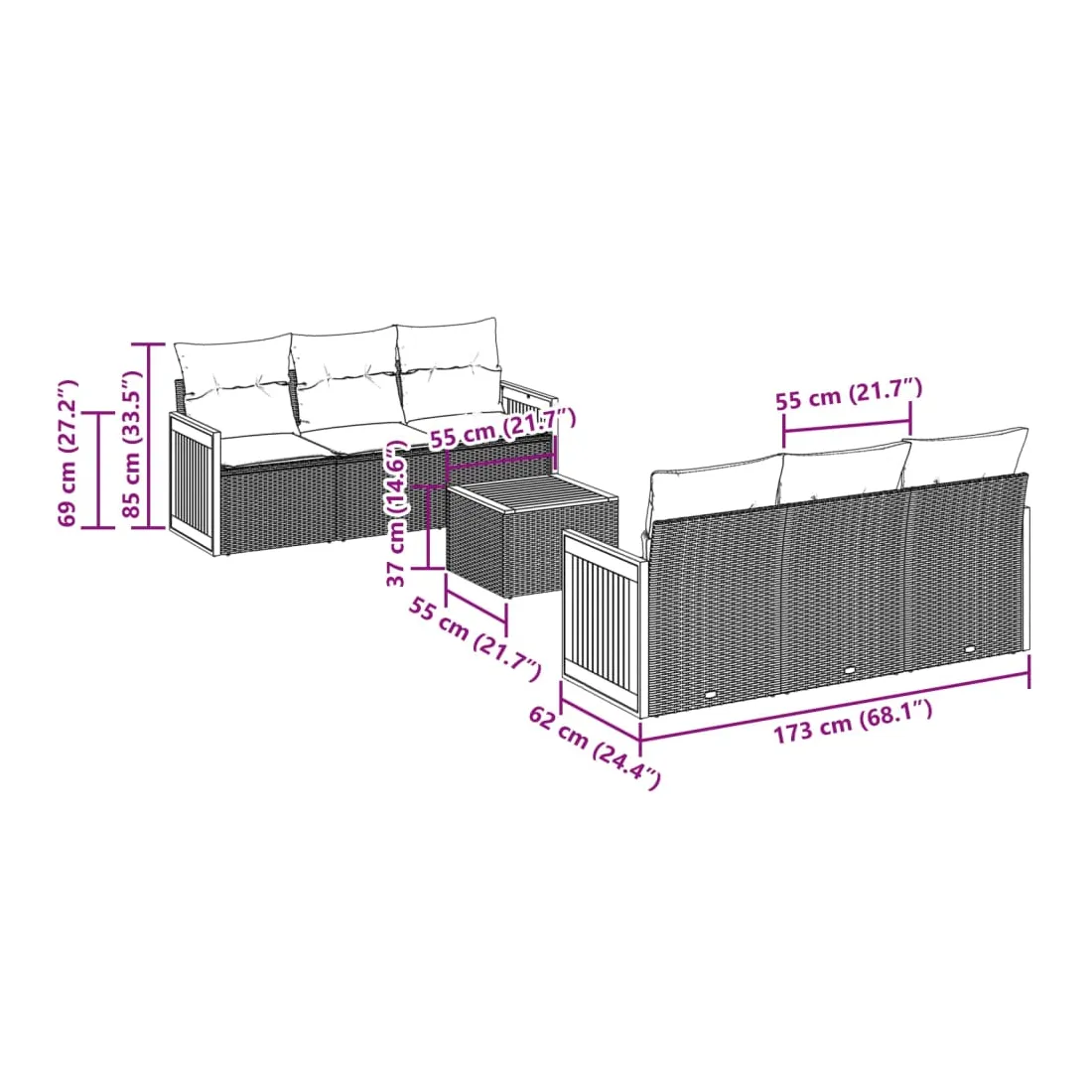 Cet ensemble de canapés de jardin est le complément parfait de votre arrière-cour, terrasse ou patio, offrant un espace confortable et accueillant pour discuter avec la famille et les amis ou simplement se détendre et profiter de l'extérieur. Matériau durable : la résine tressée, également connue sous le nom de poly rotin, est un matériau synthétique solide et nécessitant peu d'entretien qui ressemble au rotin naturel. Il est léger, facile à nettoyer et couramment utilisé pour les meubles d'extérieur en raison de sa durabilité et de ses propriétés de résistance aux intempéries.Expérience d'assise confortable : ce mobilier d'extérieur, doté de coussins épais, offre une expérience d'assise confortable.Dessus stable et facile à nettoyer : cette table de jardin a un dessus en bois d'acacia robuste, durable et facile à nettoyer avec un chiffon humide.Housse amovible et lavable : ces coussins de siège sont dotés de housses amovibles pour un lavage et un entretien faciles.Conception modulaire : cet ensemble de meubles d'extérieur a une conception modulaire, ce qui le rend complètement flexible et facile à déplacer, afin que vous puissiez créer un agencement de meubles d'extérieur personnalisé. Bon à savoir :Pour que vos meubles d'extérieur restent beaux, nous vous recommandons de les protéger avec une housse imperméable.