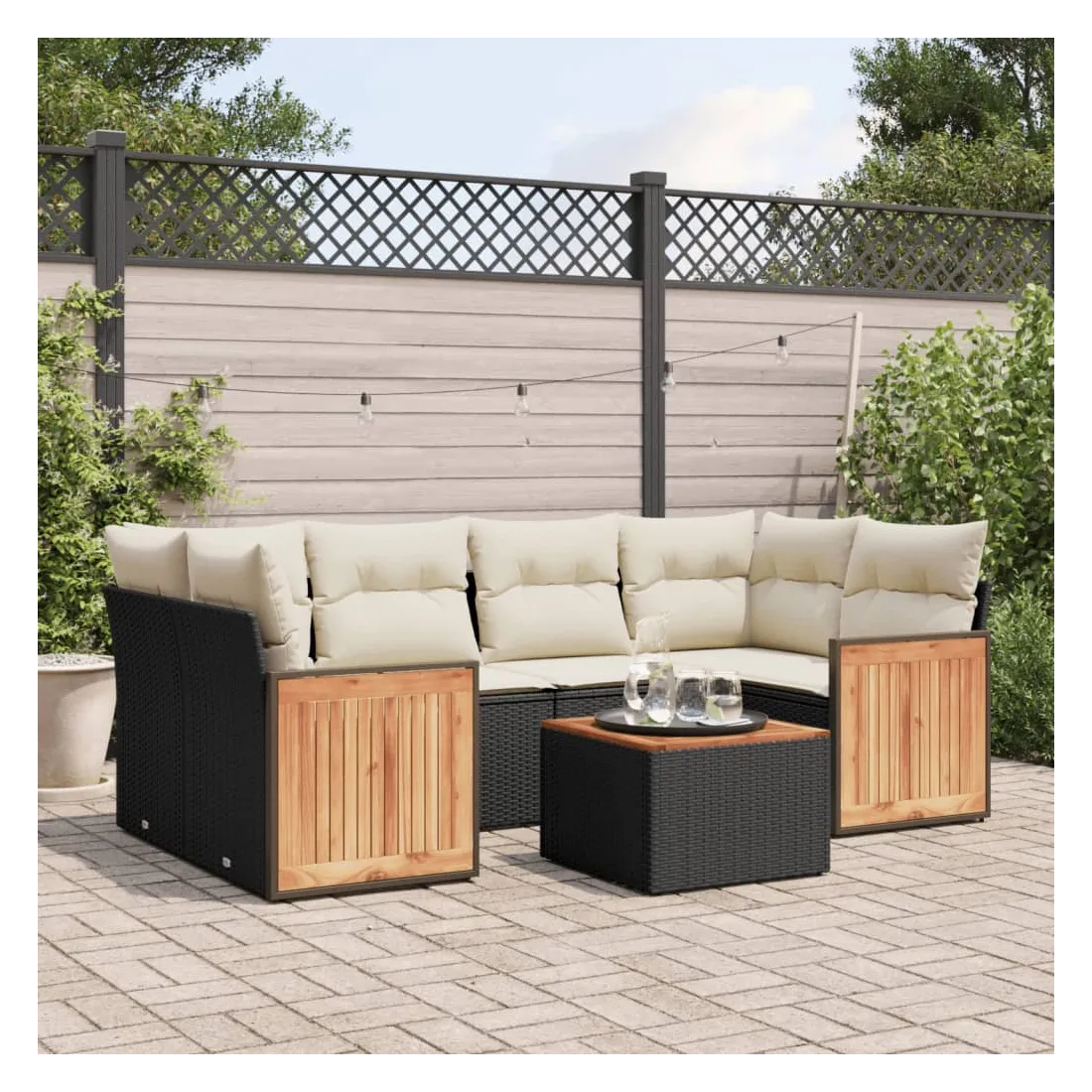 Cet ensemble de canapés de jardin est le complément parfait de votre arrière-cour, terrasse ou patio, offrant un espace confortable et accueillant pour discuter avec la famille et les amis ou simplement se détendre et profiter de l'extérieur. Matériau durable : la résine tressée, également connue sous le nom de poly rotin, est un matériau synthétique solide et nécessitant peu d'entretien qui ressemble au rotin naturel. Il est léger, facile à nettoyer et couramment utilisé pour les meubles d'extérieur en raison de sa durabilité et de ses propriétés de résistance aux intempéries.Expérience d'assise confortable : ce mobilier d'extérieur, doté de coussins épais, offre une expérience d'assise confortable.Dessus stable et facile à nettoyer : cette table de jardin a un dessus en bois d'acacia robuste, durable et facile à nettoyer avec un chiffon humide.Housse amovible et lavable : ces coussins de siège sont dotés de housses amovibles pour un lavage et un entretien faciles.Conception modulaire : cet ensemble de meubles d'extérieur a une conception modulaire, ce qui le rend complètement flexible et facile à déplacer, afin que vous puissiez créer un agencement de meubles d'extérieur personnalisé. Bon à savoir :Pour que vos meubles d'extérieur restent beaux, nous vous recommandons de les protéger avec une housse imperméable.