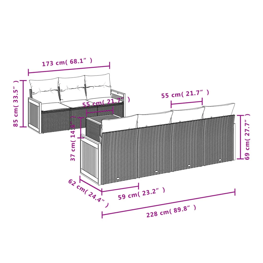 Cet ensemble de canapés de jardin est le complément parfait de votre arrière-cour, terrasse ou patio, offrant un espace confortable et accueillant pour discuter avec la famille et les amis ou simplement se détendre et profiter de l'extérieur. Matériau durable : la résine tressée, également connue sous le nom de poly rotin, est un matériau synthétique solide et nécessitant peu d'entretien qui ressemble au rotin naturel. Il est léger, facile à nettoyer et couramment utilisé pour les meubles d'extérieur en raison de sa durabilité et de ses propriétés de résistance aux intempéries.Expérience d'assise confortable : ce mobilier d'extérieur, doté de coussins épais, offre une expérience d'assise confortable.Dessus stable et facile à nettoyer : cette table de jardin a un dessus en bois d'acacia robuste, durable et facile à nettoyer avec un chiffon humide.Housse amovible et lavable : ces coussins de siège sont dotés de housses amovibles pour un lavage et un entretien faciles.Conception modulaire : cet ensemble de meubles d'extérieur a une conception modulaire, ce qui le rend complètement flexible et facile à déplacer, afin que vous puissiez créer un agencement de meubles d'extérieur personnalisé. Bon à savoir :Pour que vos meubles d'extérieur restent beaux, nous vous recommandons de les protéger avec une housse imperméable.