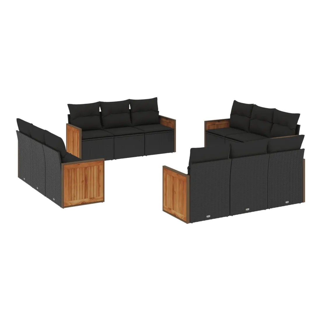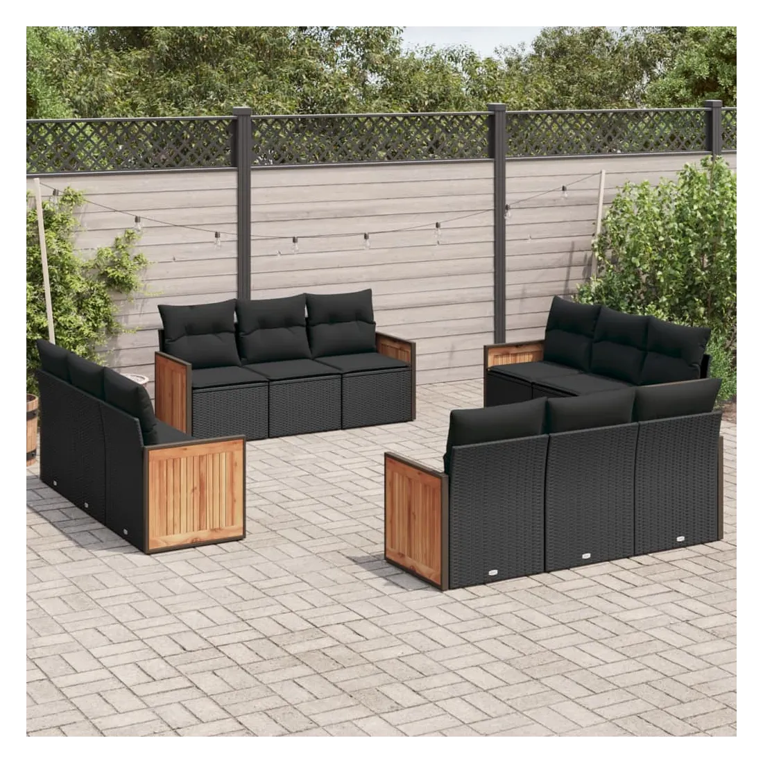 Cet ensemble de canapés de jardin est le complément parfait de votre arrière-cour, terrasse ou patio, offrant un espace confortable et accueillant pour discuter avec la famille et les amis ou simplement se détendre et profiter de l'extérieur. Matériau durable : la résine tressée, également connue sous le nom de poly rotin, est un matériau synthétique solide et nécessitant peu d'entretien qui ressemble au rotin naturel. Il est léger, facile à nettoyer et couramment utilisé pour les meubles d'extérieur en raison de sa durabilité et de ses propriétés de résistance aux intempéries.Expérience d'assise confortable : ce mobilier d'extérieur, doté de coussins épais, offre une expérience d'assise confortable.Housse amovible et lavable : ces coussins de siège sont dotés de housses amovibles pour un lavage et un entretien faciles.Conception modulaire : cet ensemble de meubles d'extérieur a une conception modulaire, ce qui le rend complètement flexible et facile à déplacer, afin que vous puissiez créer un agencement de meubles d'extérieur personnalisé. Bon à savoir :Pour que vos meubles d'extérieur restent beaux, nous vous recommandons de les protéger avec une housse imperméable.