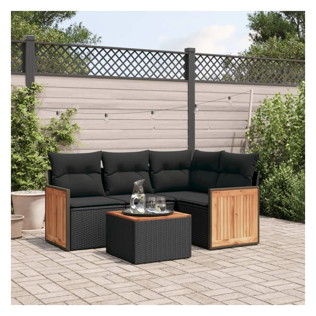 Cet ensemble de canapés de jardin est le complément parfait de votre arrière-cour, terrasse ou patio, offrant un espace confortable et accueillant pour discuter avec la famille et les amis ou simplement se détendre et profiter de l'extérieur. Matériau durable : la résine tressée, également connue sous le nom de poly rotin, est un matériau synthétique solide et nécessitant peu d'entretien qui ressemble au rotin naturel. Il est léger, facile à nettoyer et couramment utilisé pour les meubles d'extérieur en raison de sa durabilité et de ses propriétés de résistance aux intempéries.Expérience d'assise confortable : ce mobilier d'extérieur, doté de coussins épais, offre une expérience d'assise confortable.Dessus stable et facile à nettoyer : cette table de jardin a un dessus en bois d'acacia robuste, durable et facile à nettoyer avec un chiffon humide.Housse amovible et lavable : ces coussins de siège sont dotés de housses amovibles pour un lavage et un entretien faciles.Conception modulaire : cet ensemble de meubles d'extérieur a une conception modulaire, ce qui le rend complètement flexible et facile à déplacer, afin que vous puissiez créer un agencement de meubles d'extérieur personnalisé. Bon à savoir :Pour que vos meubles d'extérieur restent beaux, nous vous recommandons de les protéger avec une housse imperméable.