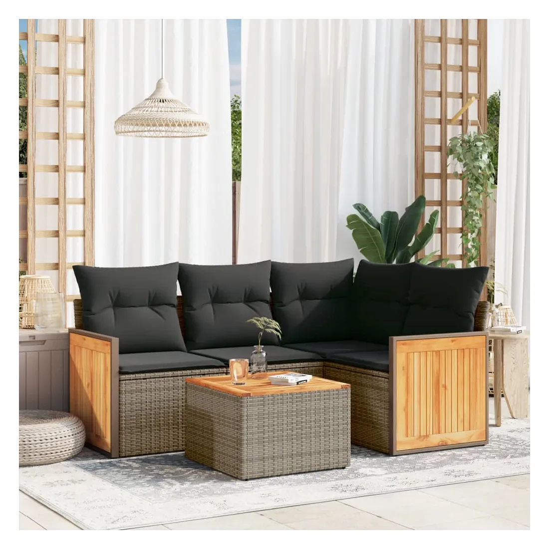 Cet ensemble de canapés de jardin est le complément parfait de votre arrière-cour, terrasse ou patio, offrant un espace confortable et accueillant pour discuter avec la famille et les amis ou simplement se détendre et profiter de l'extérieur. Matériau durable : la résine tressée, également connue sous le nom de poly rotin, est un matériau synthétique solide et nécessitant peu d'entretien qui ressemble au rotin naturel. Il est léger, facile à nettoyer et couramment utilisé pour les meubles d'extérieur en raison de sa durabilité et de ses propriétés de résistance aux intempéries.Expérience d'assise confortable : ce mobilier d'extérieur, doté de coussins épais, offre une expérience d'assise confortable.Dessus stable et facile à nettoyer : cette table de jardin a un dessus en bois d'acacia robuste, durable et facile à nettoyer avec un chiffon humide.Housse amovible et lavable : ces coussins de siège sont dotés de housses amovibles pour un lavage et un entretien faciles.Conception modulaire : cet ensemble de meubles d'extérieur a une conception modulaire, ce qui le rend complètement flexible et facile à déplacer, afin que vous puissiez créer un agencement de meubles d'extérieur personnalisé. Bon à savoir :Pour que vos meubles d'extérieur restent beaux, nous vous recommandons de les protéger avec une housse imperméable.