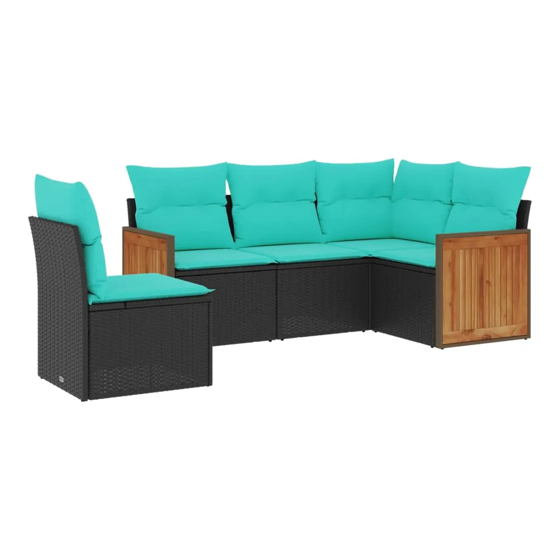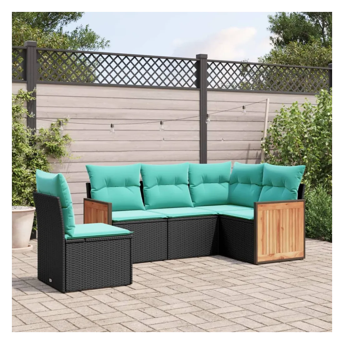 Salon de jardin 5 pcs avec coussins noir résine tressée