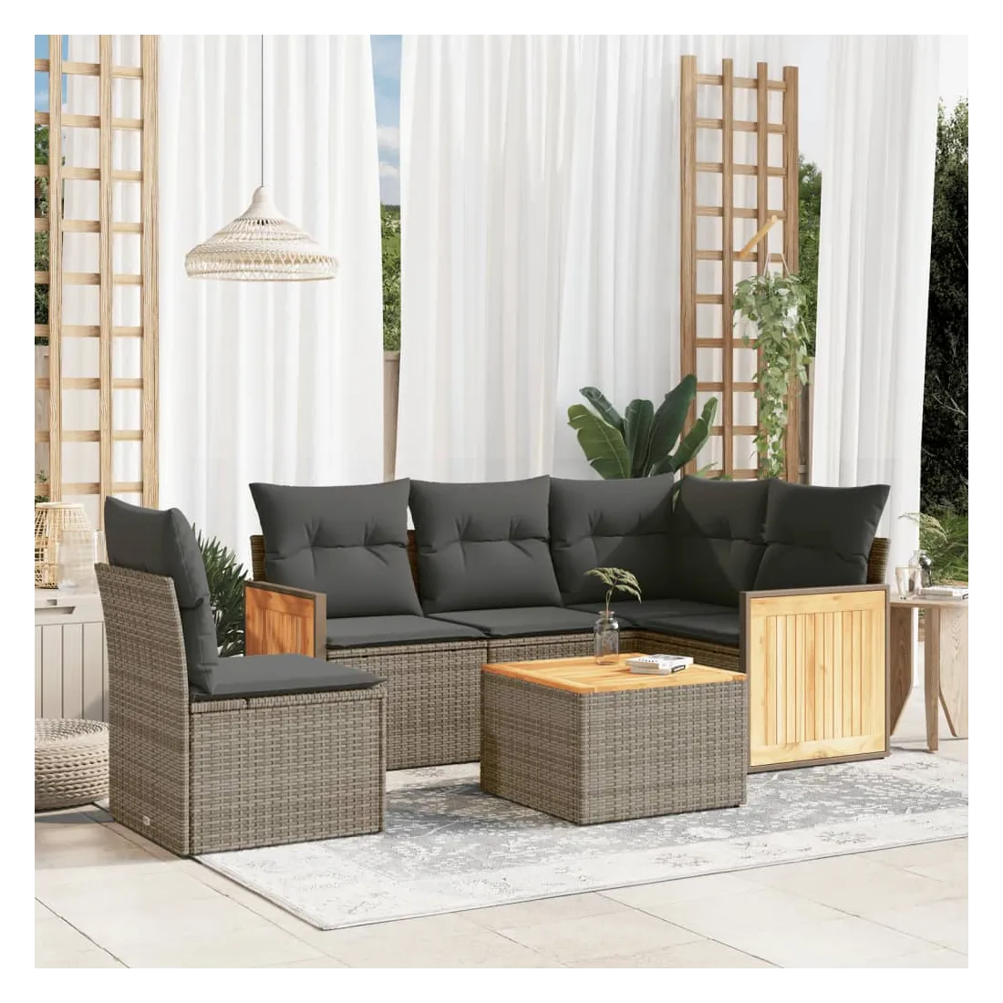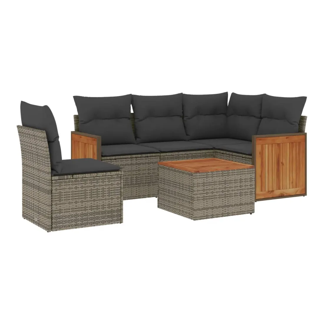 Salon de jardin 6 pcs avec coussins gris résine tressée