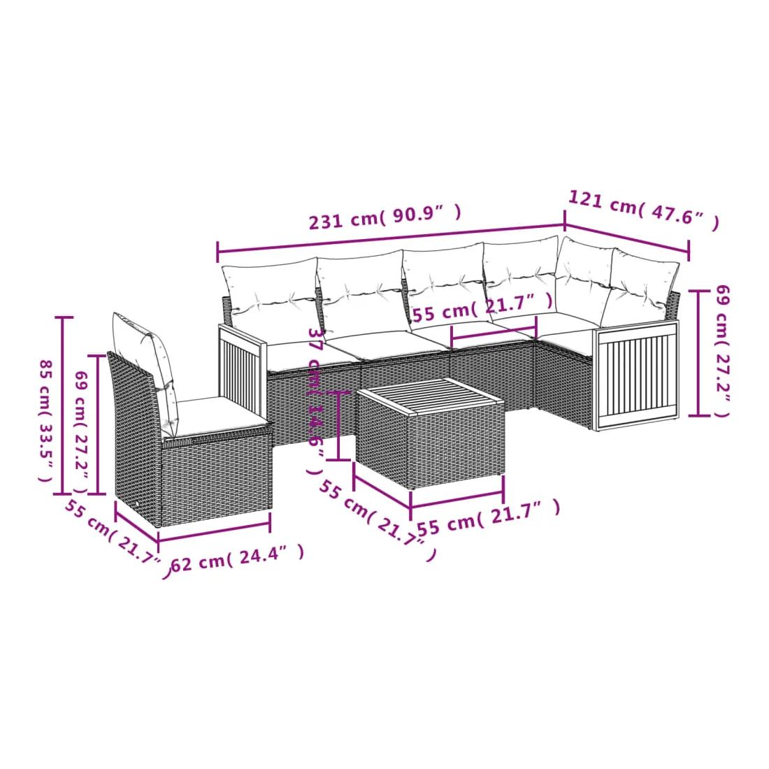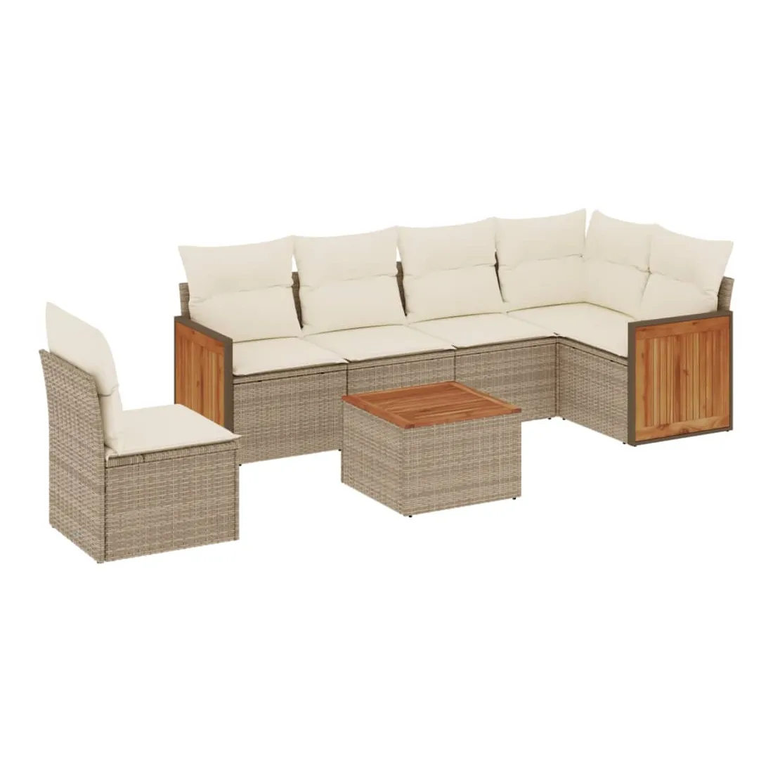 Cet ensemble de canapés de jardin est le complément parfait de votre arrière-cour, terrasse ou patio, offrant un espace confortable et accueillant pour discuter avec la famille et les amis ou simplement se détendre et profiter de l'extérieur. Matériau durable : la résine tressée, également connue sous le nom de poly rotin, est un matériau synthétique solide et nécessitant peu d'entretien qui ressemble au rotin naturel. Il est léger, facile à nettoyer et couramment utilisé pour les meubles d'extérieur en raison de sa durabilité et de ses propriétés de résistance aux intempéries.Expérience d'assise confortable : ce mobilier d'extérieur, doté de coussins épais, offre une expérience d'assise confortable.Dessus stable et facile à nettoyer : cette table de jardin a un dessus en bois d'acacia robuste, durable et facile à nettoyer avec un chiffon humide.Housse amovible et lavable : ces coussins de siège sont dotés de housses amovibles pour un lavage et un entretien faciles.Conception modulaire : cet ensemble de meubles d'extérieur a une conception modulaire, ce qui le rend complètement flexible et facile à déplacer, afin que vous puissiez créer un agencement de meubles d'extérieur personnalisé. Bon à savoir :Pour que vos meubles d'extérieur restent beaux, nous vous recommandons de les protéger avec une housse imperméable.