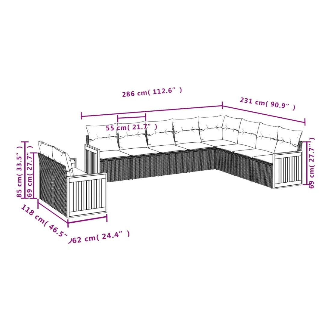 - Dimensions du coussin de dossier : 55 x 45 x 13 cm (L x l x é)