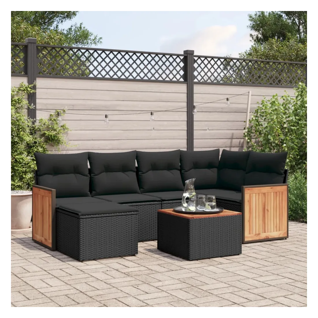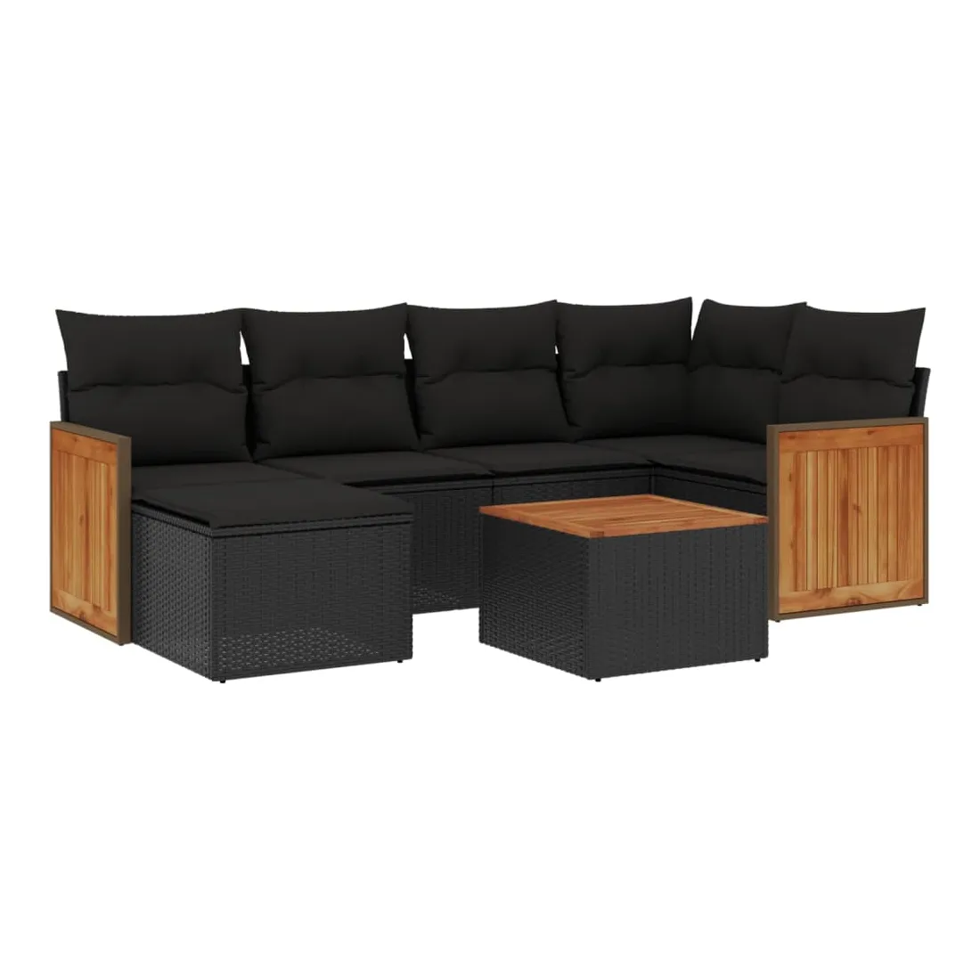 Cet ensemble de canapés de jardin est le complément parfait de votre arrière-cour, terrasse ou patio, offrant un espace confortable et accueillant pour discuter avec la famille et les amis ou simplement se détendre et profiter de l'extérieur. Matériau durable : la résine tressée, également connue sous le nom de poly rotin, est un matériau synthétique solide et nécessitant peu d'entretien qui ressemble au rotin naturel. Il est léger, facile à nettoyer et couramment utilisé pour les meubles d'extérieur en raison de sa durabilité et de ses propriétés de résistance aux intempéries.Expérience d'assise confortable : ce mobilier d'extérieur, doté de coussins épais, offre une expérience d'assise confortable.Dessus stable et facile à nettoyer : cette table de jardin a un dessus en bois d'acacia robuste, durable et facile à nettoyer avec un chiffon humide.Housse amovible et lavable : ces coussins de siège sont dotés de housses amovibles pour un lavage et un entretien faciles.Conception modulaire : cet ensemble de meubles d'extérieur a une conception modulaire, ce qui le rend complètement flexible et facile à déplacer, afin que vous puissiez créer un agencement de meubles d'extérieur personnalisé. Bon à savoir :Pour que vos meubles d'extérieur restent beaux, nous vous recommandons de les protéger avec une housse imperméable.