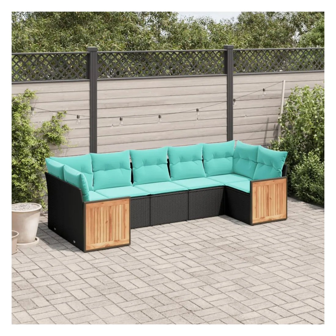 Cet ensemble de canapés de jardin est le complément parfait de votre arrière-cour, terrasse ou patio, offrant un espace confortable et accueillant pour discuter avec la famille et les amis ou simplement se détendre et profiter de l'extérieur. Matériau durable : la résine tressée, également connue sous le nom de poly rotin, est un matériau synthétique solide et nécessitant peu d'entretien qui ressemble au rotin naturel. Elle est légère, facile à nettoyer et couramment utilisée pour les meubles d'extérieur en raison de sa durabilité et de ses propriétés de résistance aux intempéries.Expérience d'assise confortable : ce mobilier d'extérieur, doté de coussins épais, offre une expérience d'assise confortable.Dessus stable et facile à nettoyer : cette table de jardin a un dessus en bois d'acacia robuste, durable et facile à nettoyer avec un chiffon humide.Housse amovible et lavable : ces coussins de siège sont dotés de housses amovibles pour un lavage et un entretien faciles.Conception modulaire : cet ensemble de meubles d'extérieur a une conception modulaire, ce qui le rend complètement flexible et facile à déplacer, afin que vous puissiez créer un agencement de meubles d'extérieur personnalisé. Bon à savoir :Pour que vos meubles d'extérieur restent beaux, nous vous recommandons de les protéger avec une housse imperméable.