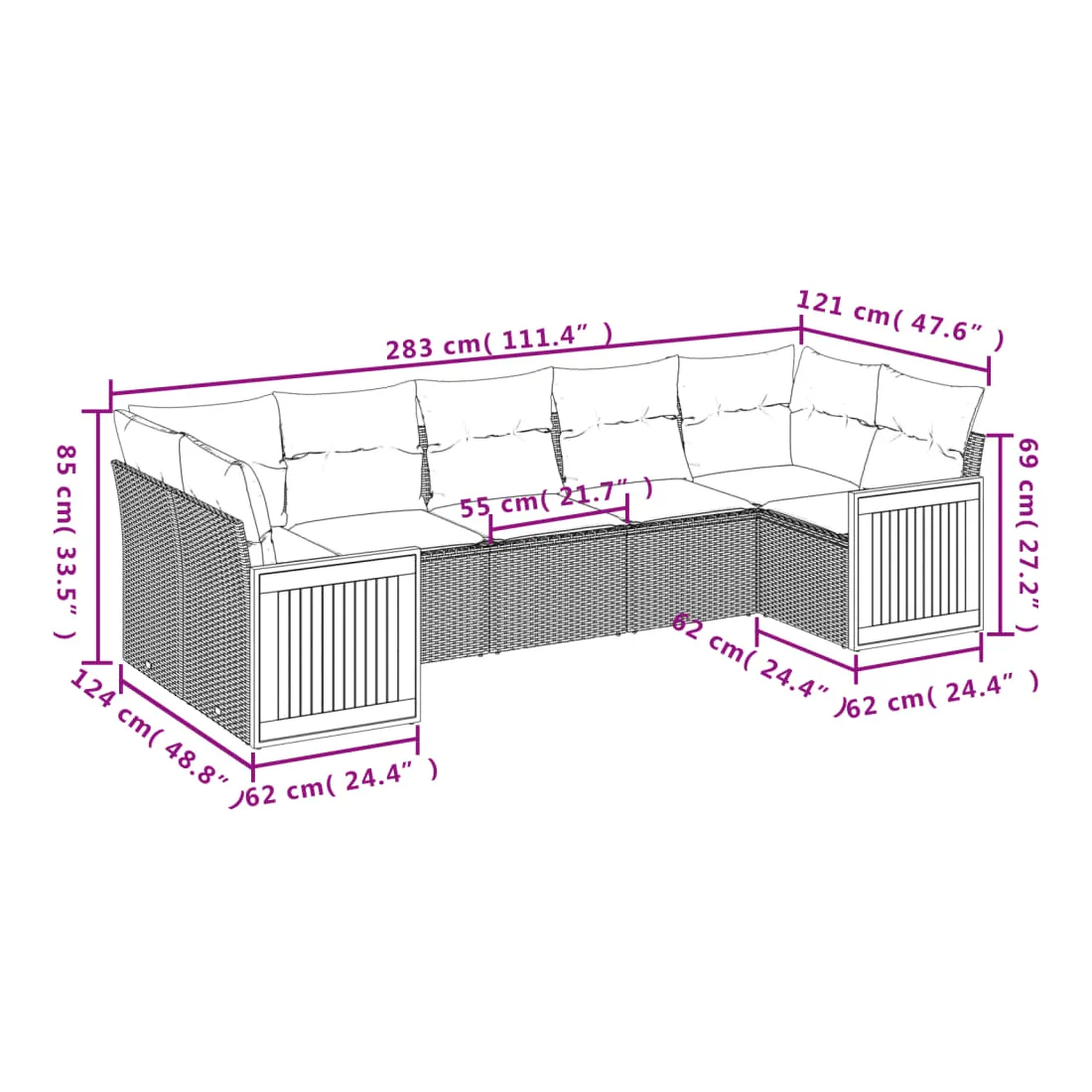 - Dimensions du coussin de dossier : 55 x 45 x 13 cm (L x l x é)