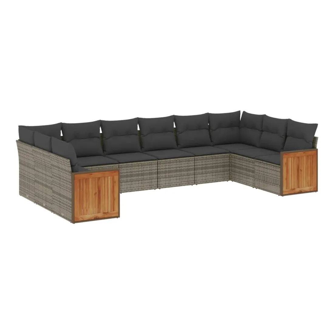 Salon de jardin avec coussins 10 pcs gris résine tressée