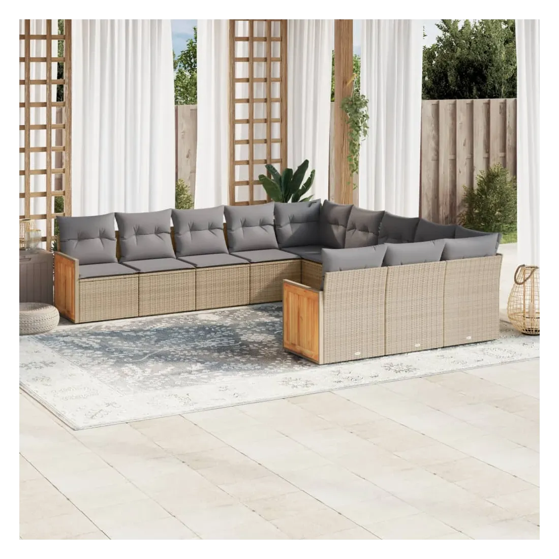 Cet ensemble de canapés de jardin est le complément parfait de votre arrière-cour, terrasse ou patio, offrant un espace confortable et accueillant pour discuter avec la famille et les amis ou simplement se détendre et profiter de l'extérieur. Matériau durable : la résine tressée, également connue sous le nom de poly rotin, est un matériau synthétique solide et nécessitant peu d'entretien qui ressemble au rotin naturel. Il est léger, facile à nettoyer et couramment utilisé pour les meubles d'extérieur en raison de sa durabilité et de ses propriétés de résistance aux intempéries.Expérience d'assise confortable : ce mobilier d'extérieur, doté de coussins épais, offre une expérience d'assise confortable.Housse amovible et lavable : ces coussins de siège sont dotés de housses amovibles pour un lavage et un entretien faciles.Conception modulaire : cet ensemble de meubles d'extérieur a une conception modulaire, ce qui le rend complètement flexible et facile à déplacer, afin que vous puissiez créer un agencement de meubles d'extérieur personnalisé. Bon à savoir :Pour que vos meubles d'extérieur restent beaux, nous vous recommandons de les protéger avec une housse imperméable.
