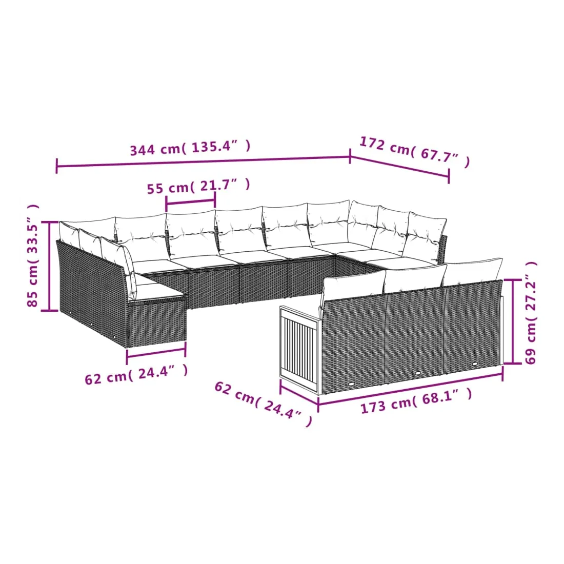 - Dimensions du coussin de dossier : 55 x 45 x 13 cm (L x l x é)