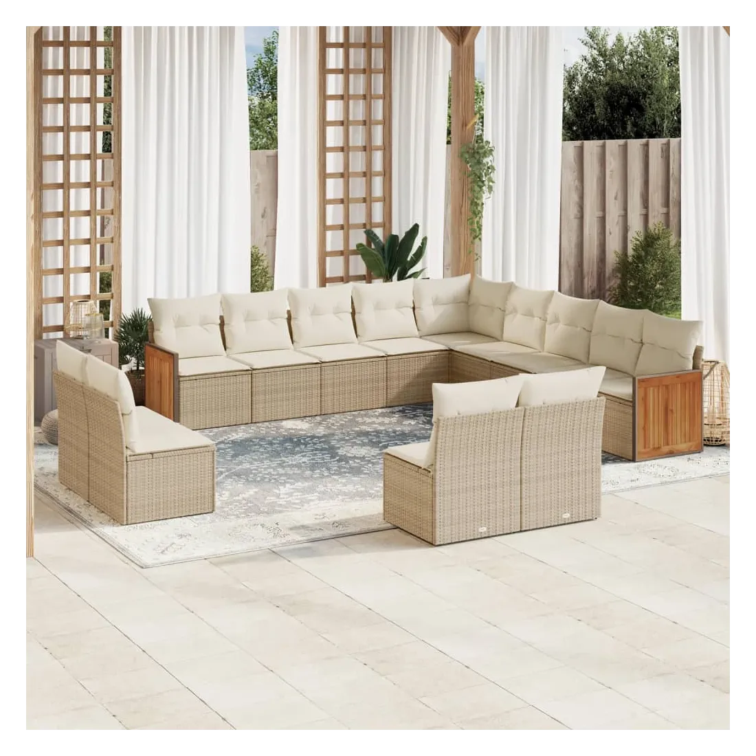 Cet ensemble de canapés de jardin est le complément parfait de votre arrière-cour, terrasse ou patio, offrant un espace confortable et accueillant pour discuter avec la famille et les amis ou simplement se détendre et profiter de l'extérieur. Matériau durable : la résine tressée, également connue sous le nom de poly rotin, est un matériau synthétique solide et nécessitant peu d'entretien qui ressemble au rotin naturel. Il est léger, facile à nettoyer et couramment utilisé pour les meubles d'extérieur en raison de sa durabilité et de ses propriétés de résistance aux intempéries.Expérience d'assise confortable : ce mobilier d'extérieur, doté de coussins épais, offre une expérience d'assise confortable.Housse amovible et lavable : ces coussins de siège sont dotés de housses amovibles pour un lavage et un entretien faciles.Conception modulaire : cet ensemble de meubles d'extérieur a une conception modulaire, ce qui le rend complètement flexible et facile à déplacer, afin que vous puissiez créer un agencement de meubles d'extérieur personnalisé. Bon à savoir :Pour que vos meubles d'extérieur restent beaux, nous vous recommandons de les protéger avec une housse imperméable.