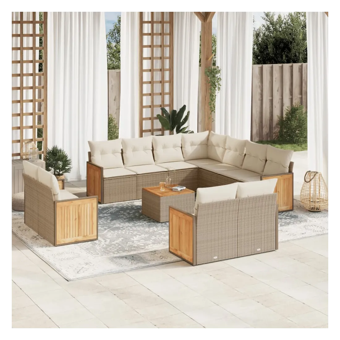 Cet ensemble de canapés de jardin est le complément parfait de votre arrière-cour, terrasse ou patio, offrant un espace confortable et accueillant pour discuter avec la famille et les amis ou simplement se détendre et profiter de l'extérieur. Matériau durable : la résine tressée, également connue sous le nom de poly rotin, est un matériau synthétique solide et nécessitant peu d'entretien qui ressemble au rotin naturel. Il est léger, facile à nettoyer et couramment utilisé pour les meubles d'extérieur en raison de sa durabilité et de ses propriétés de résistance aux intempéries.Expérience d'assise confortable : ce mobilier d'extérieur, doté de coussins épais, offre une expérience d'assise confortable.Dessus stable et facile à nettoyer : cette table de jardin a un dessus en bois d'acacia robuste, durable et facile à nettoyer avec un chiffon humide.Housse amovible et lavable : ces coussins de siège sont dotés de housses amovibles pour un lavage et un entretien faciles.Conception modulaire : cet ensemble de meubles d'extérieur a une conception modulaire, ce qui le rend complètement flexible et facile à déplacer, afin que vous puissiez créer un agencement de meubles d'extérieur personnalisé. Bon à savoir :Pour que vos meubles d'extérieur restent beaux, nous vous recommandons de les protéger avec une housse imperméable.