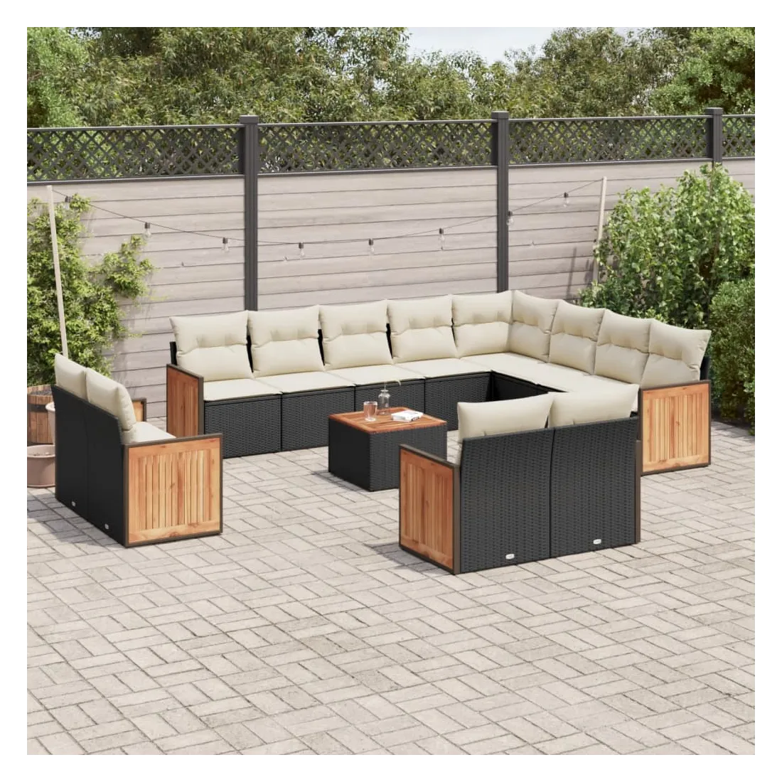 Cet ensemble de canapés de jardin est le complément parfait de votre arrière-cour, terrasse ou patio, offrant un espace confortable et accueillant pour discuter avec la famille et les amis ou simplement se détendre et profiter de l'extérieur. Matériau durable : la résine tressée, également connue sous le nom de poly rotin, est un matériau synthétique solide et nécessitant peu d'entretien qui ressemble au rotin naturel. Il est léger, facile à nettoyer et couramment utilisé pour les meubles d'extérieur en raison de sa durabilité et de ses propriétés de résistance aux intempéries.Expérience d'assise confortable : ce mobilier d'extérieur, doté de coussins épais, offre une expérience d'assise confortable.Dessus stable et facile à nettoyer : cette table de jardin a un dessus en bois d'acacia robuste, durable et facile à nettoyer avec un chiffon humide.Housse amovible et lavable : ces coussins de siège sont dotés de housses amovibles pour un lavage et un entretien faciles.Conception modulaire : cet ensemble de meubles d'extérieur a une conception modulaire, ce qui le rend complètement flexible et facile à déplacer, afin que vous puissiez créer un agencement de meubles d'extérieur personnalisé. Bon à savoir :Pour que vos meubles d'extérieur restent beaux, nous vous recommandons de les protéger avec une housse imperméable.
