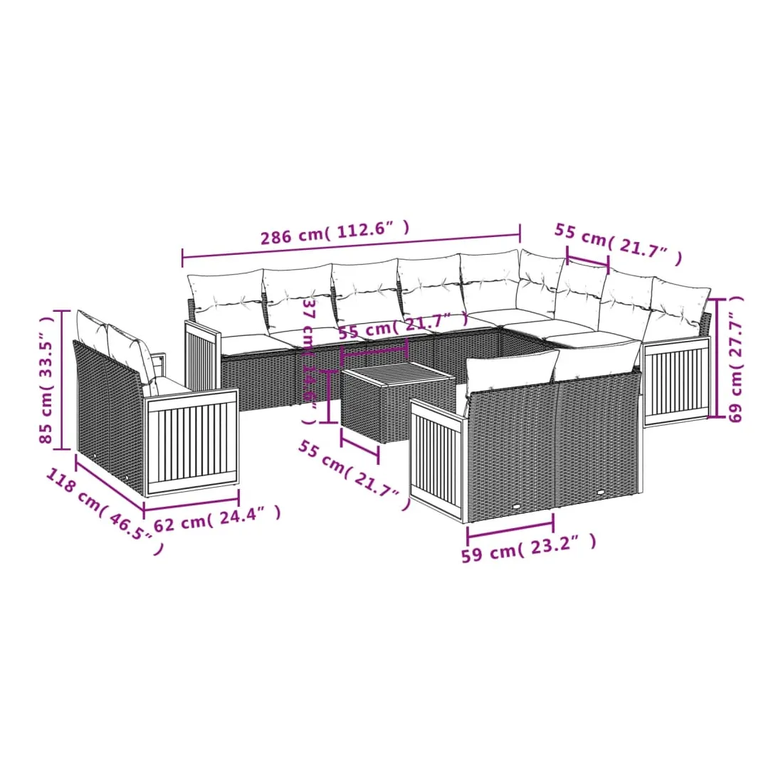 - Dimensions du coussin de dossier : 55 x 45 x 13 cm (L x l x é)