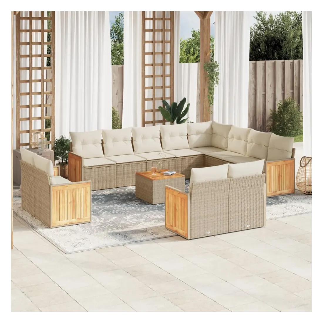 Cet ensemble de canapés de jardin est le complément parfait de votre arrière-cour, terrasse ou patio, offrant un espace confortable et accueillant pour discuter avec la famille et les amis ou simplement se détendre et profiter de l'extérieur. Matériau durable : la résine tressée, également connue sous le nom de poly rotin, est un matériau synthétique solide et nécessitant peu d'entretien qui ressemble au rotin naturel. Il est léger, facile à nettoyer et couramment utilisé pour les meubles d'extérieur en raison de sa durabilité et de ses propriétés de résistance aux intempéries.Expérience d'assise confortable : ce mobilier d'extérieur, doté de coussins épais, offre une expérience d'assise confortable.Dessus stable et facile à nettoyer : cette table de jardin a un dessus en bois d'acacia robuste, durable et facile à nettoyer avec un chiffon humide.Housse amovible et lavable : ces coussins de siège sont dotés de housses amovibles pour un lavage et un entretien faciles.Conception modulaire : cet ensemble de meubles d'extérieur a une conception modulaire, ce qui le rend complètement flexible et facile à déplacer, afin que vous puissiez créer un agencement de meubles d'extérieur personnalisé. Bon à savoir :Pour que vos meubles d'extérieur restent beaux, nous vous recommandons de les protéger avec une housse imperméable.