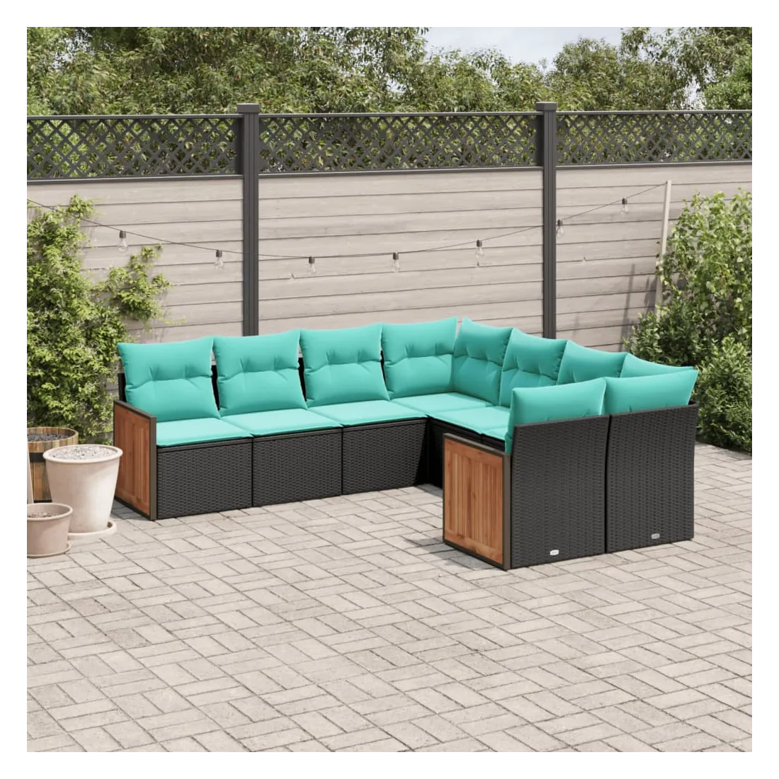 Cet ensemble de canapés de jardin est le complément parfait de votre arrière-cour, terrasse ou patio, offrant un espace confortable et accueillant pour discuter avec la famille et les amis ou simplement se détendre et profiter de l'extérieur. Matériau durable : la résine tressée, également connue sous le nom de poly rotin, est un matériau synthétique solide et nécessitant peu d'entretien qui ressemble au rotin naturel. Elle est légère, facile à nettoyer et couramment utilisée pour les meubles d'extérieur en raison de sa durabilité et de ses propriétés de résistance aux intempéries.Expérience d'assise confortable : ce mobilier d'extérieur, doté de coussins épais, offre une expérience d'assise confortable.Housse amovible et lavable : ces coussins de siège sont dotés de housses amovibles pour un lavage et un entretien faciles.Conception modulaire : cet ensemble de meubles d'extérieur a une conception modulaire, ce qui le rend complètement flexible et facile à déplacer, afin que vous puissiez créer un agencement de meubles d'extérieur personnalisé. Bon à savoir :Pour que vos meubles d'extérieur restent beaux, nous vous recommandons de les protéger avec une housse imperméable.