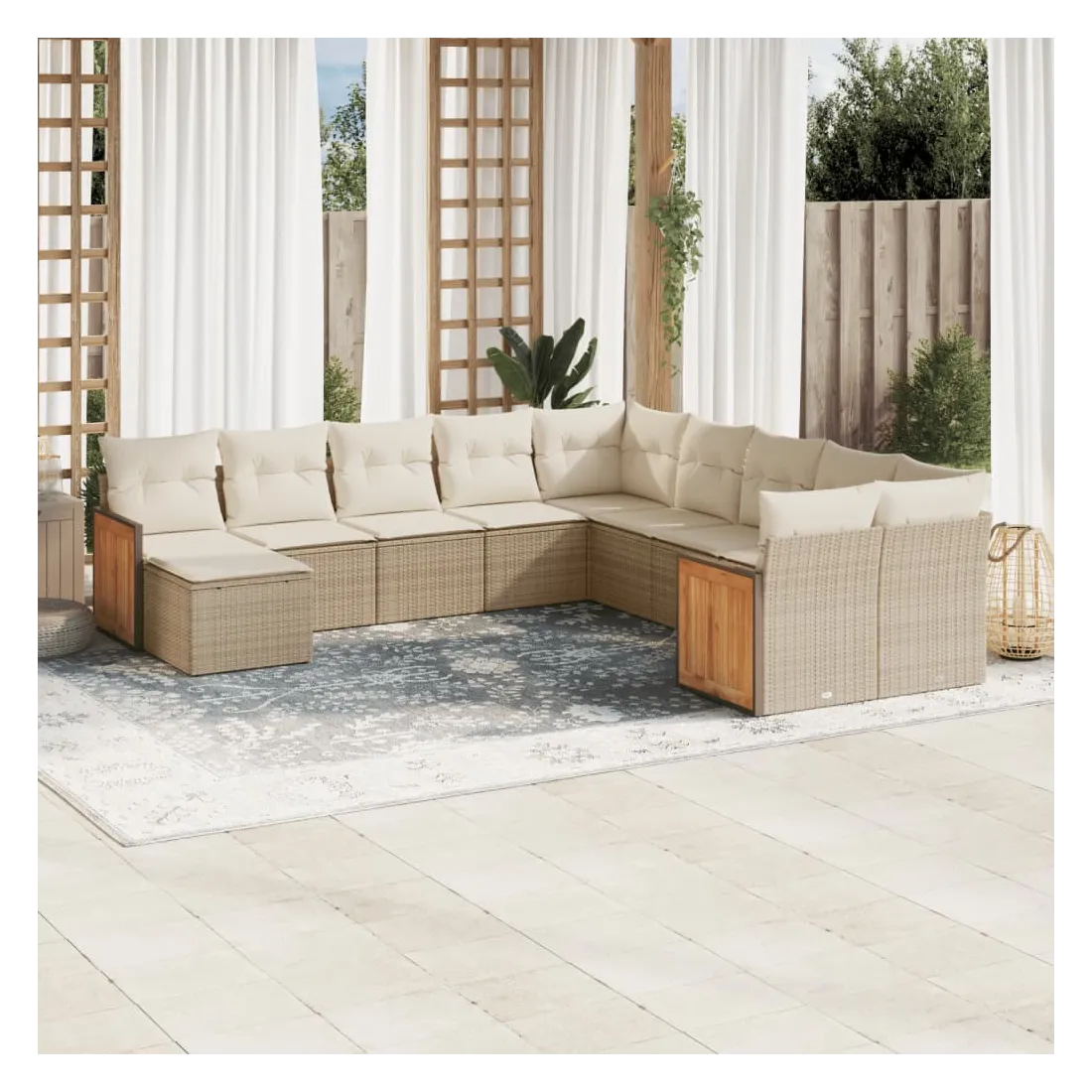 Cet ensemble de canapés de jardin est le complément parfait de votre arrière-cour, terrasse ou patio, offrant un espace confortable et accueillant pour discuter avec la famille et les amis ou simplement se détendre et profiter de l'extérieur. Matériau durable : la résine tressée, également connue sous le nom de poly rotin, est un matériau synthétique solide et nécessitant peu d'entretien qui ressemble au rotin naturel. Il est léger, facile à nettoyer et couramment utilisé pour les meubles d'extérieur en raison de sa durabilité et de ses propriétés de résistance aux intempéries.Expérience d'assise confortable : ce mobilier d'extérieur, doté de coussins épais, offre une expérience d'assise confortable.Housse amovible et lavable : ces coussins de siège sont dotés de housses amovibles pour un lavage et un entretien faciles.Conception modulaire : cet ensemble de meubles d'extérieur a une conception modulaire, ce qui le rend complètement flexible et facile à déplacer, afin que vous puissiez créer un agencement de meubles d'extérieur personnalisé. Bon à savoir :Pour que vos meubles d'extérieur restent beaux, nous vous recommandons de les protéger avec une housse imperméable.