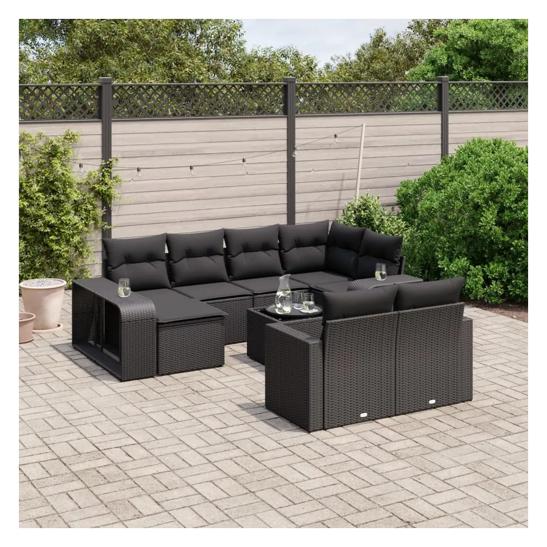 Cet ensemble de canapés de jardin est le complément parfait de votre arrière-cour, terrasse ou patio, offrant un espace confortable et accueillant pour discuter avec la famille et les amis ou simplement se détendre et profiter de l'extérieur. Matériau durable : la résine tressée, également connue sous le nom de poly rotin, est un matériau synthétique solide et nécessitant peu d'entretien qui ressemble au rotin naturel. Il est léger, facile à nettoyer et couramment utilisé pour les meubles d'extérieur en raison de sa durabilité et de ses propriétés de résistance aux intempéries.Dessus en verre : le dessus de la table d'extérieur est fabriqué en verre trempé solide et durable, ce qui le rend facile à nettoyer avec un chiffon humide et ajoute une touche d'élégance à votre espace extérieur.Expérience d'assise confortable : ce canapé d'extérieur, doté de coussins épais, offre une expérience d'assise confortable.Housse amovible et lavable : ces coussins de siège sont dotés de housses amovibles pour un lavage et un entretien faciles.Conception modulaire : cet ensemble de meubles d'extérieur a une conception modulaire, ce qui le rend complètement flexible et facile à déplacer, afin que vous puissiez créer un agencement de meubles d'extérieur personnalisé. Bon à savoir :Pour que vos meubles d'extérieur restent beaux, nous vous recommandons de les protéger avec une housse imperméable.
