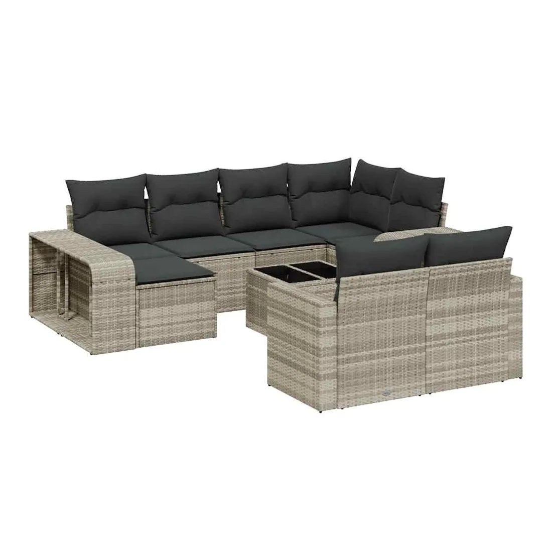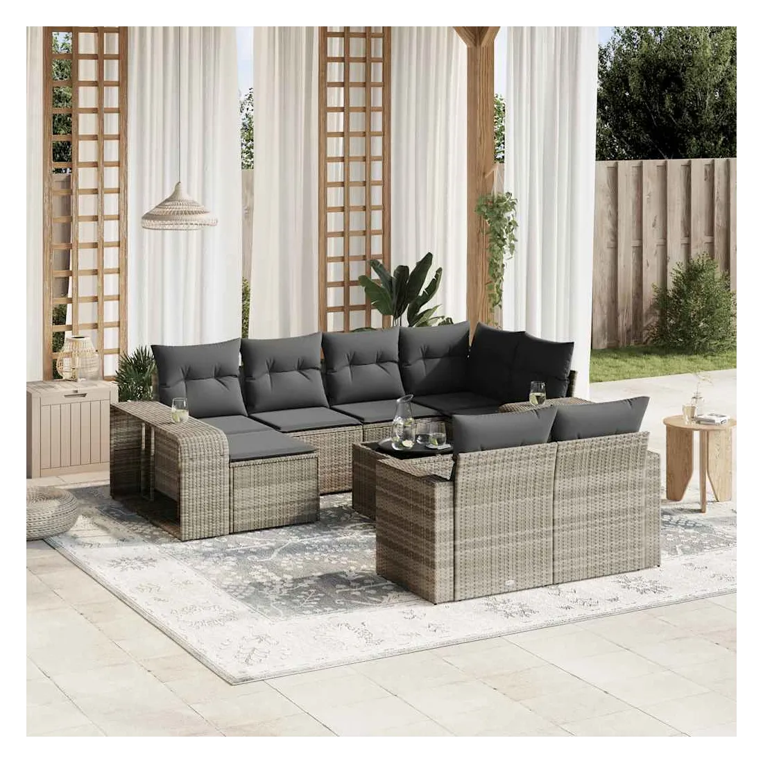 Cet ensemble de canapés de jardin est le complément parfait de votre arrière-cour, terrasse ou patio, offrant un espace confortable et accueillant pour discuter avec la famille et les amis ou simplement se détendre et profiter de l'extérieur. Matériau durable : la résine tressée, également connue sous le nom de poly rotin, est un matériau synthétique solide et nécessitant peu d'entretien qui ressemble au rotin naturel. Il est léger, facile à nettoyer et couramment utilisé pour les meubles d'extérieur en raison de sa durabilité et de ses propriétés de résistance aux intempéries.Dessus en verre : le dessus de la table d'extérieur est fabriqué en verre trempé solide et durable, ce qui le rend facile à nettoyer avec un chiffon humide et ajoute une touche d'élégance à votre espace extérieur.Expérience d'assise confortable : ce canapé d'extérieur, doté de coussins épais, offre une expérience d'assise confortable.Housse amovible et lavable : ces coussins de siège sont dotés de housses amovibles pour un lavage et un entretien faciles.Conception modulaire : cet ensemble de meubles d'extérieur a une conception modulaire, ce qui le rend complètement flexible et facile à déplacer, afin que vous puissiez créer un agencement de meubles d'extérieur personnalisé. Bon à savoir :Pour que vos meubles d'extérieur restent beaux, nous vous recommandons de les protéger avec une housse imperméable.
