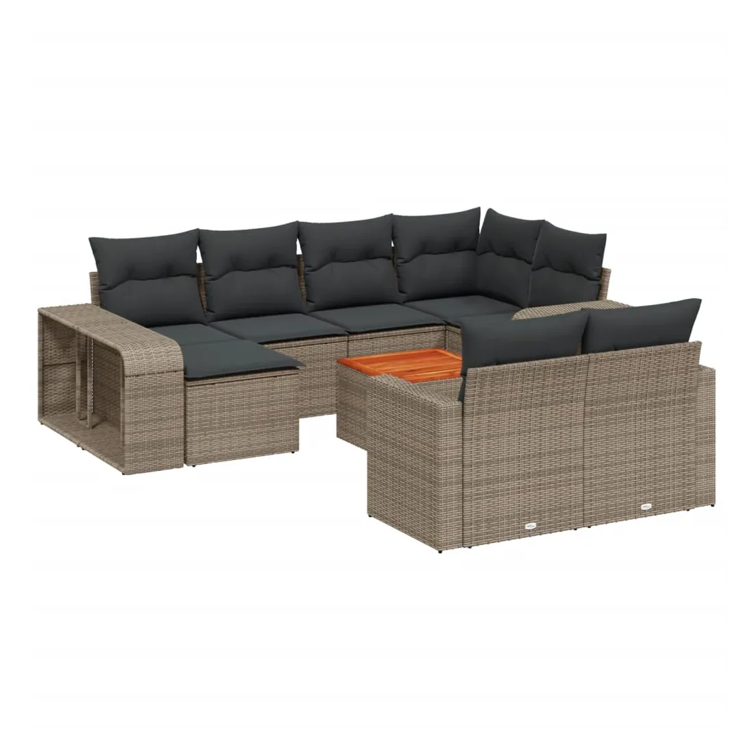 Cet ensemble de canapés de jardin est le complément parfait de votre arrière-cour, terrasse ou patio, offrant un espace confortable et accueillant pour discuter avec la famille et les amis ou simplement se détendre et profiter de l'extérieur. Matériau durable : la résine tressée, également connue sous le nom de poly rotin, est un matériau synthétique solide et nécessitant peu d'entretien qui ressemble au rotin naturel. Il est léger, facile à nettoyer et couramment utilisé pour les meubles d'extérieur en raison de sa durabilité et de ses propriétés de résistance aux intempéries.Dessus stable et facile à nettoyer : cette table de jardin a un dessus en bois d'acacia robuste, durable et facile à nettoyer avec un chiffon humide.Expérience d'assise confortable : ce canapé d'extérieur, doté de coussins épais, offre une expérience d'assise confortable.Housse amovible et lavable : ces coussins de siège sont dotés de housses amovibles pour un lavage et un entretien faciles.Conception modulaire : cet ensemble de meubles d'extérieur a une conception modulaire, ce qui le rend complètement flexible et facile à déplacer, afin que vous puissiez créer un agencement de meubles d'extérieur personnalisé. Bon à savoir :Pour que vos meubles d'extérieur restent beaux, nous vous recommandons de les protéger avec une housse imperméable.